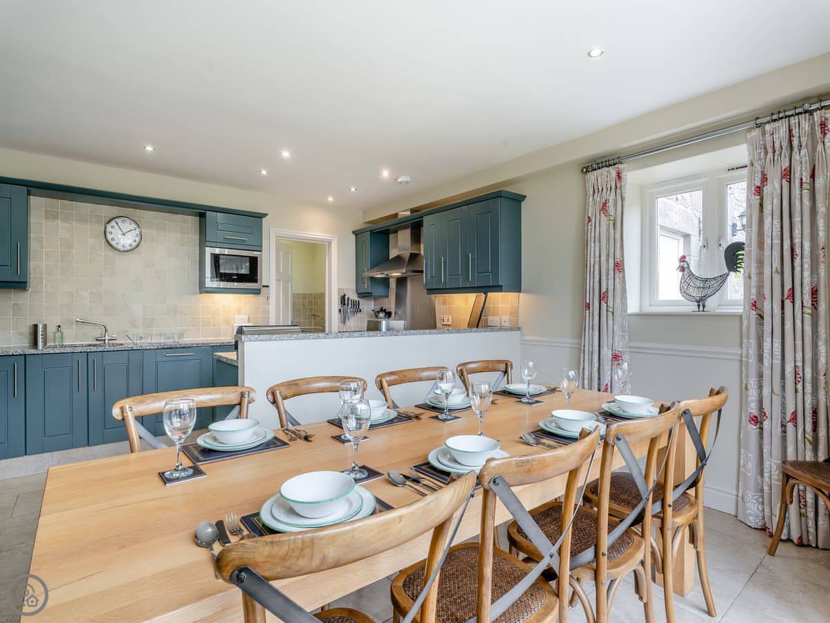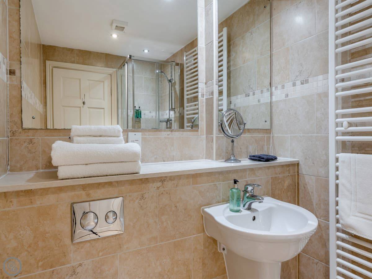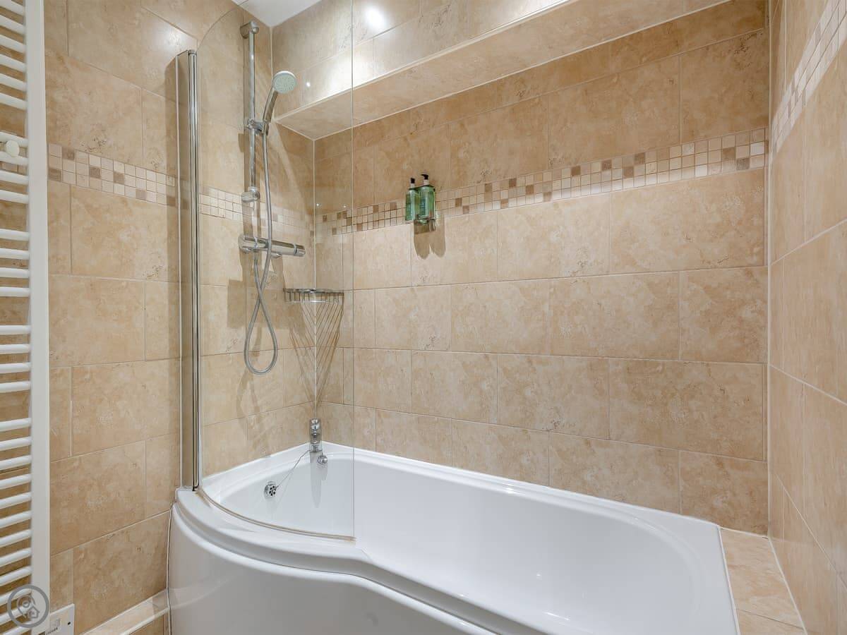 The kitchen has everything you'd need, including a dishwasher. There's a utility room with a washing machine. Upstairs, one superking bedroom has an en-suite shower, and a double bedroom has its own TV and en-suite shower too. The two twin rooms share the main bathroom.