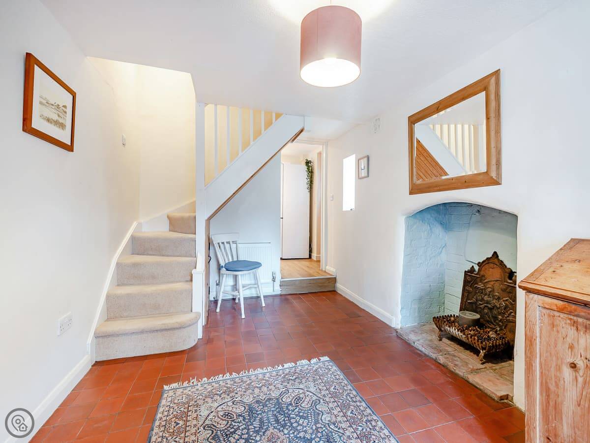 The cottage sleeps eight. Four bedrooms, two bathrooms. It's a 5 Star rating, which means it's well-equipped and finished to a high standard. It was renovated a couple of years ago. The kitchen is open plan with a big table, a dishwasher, and a coffee machine. The living room has a wood burner.