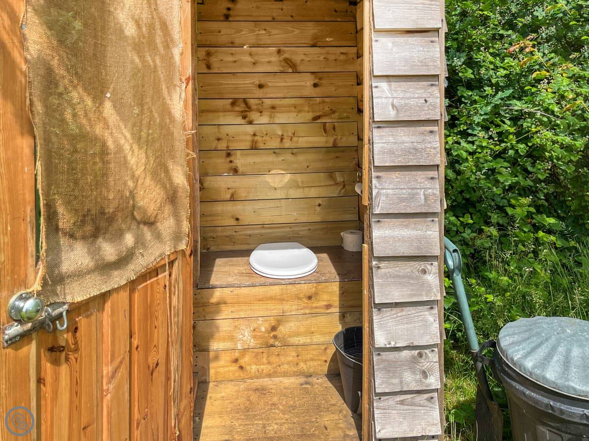 The main barn, which you share with other guests, is a short walk away. That's where the proper kitchen sink, fridge-freezer, and charging points are. You wash up in there. The toilet is in a converted horse trailer next to the barn, and there's a separate shower shack with hot water.