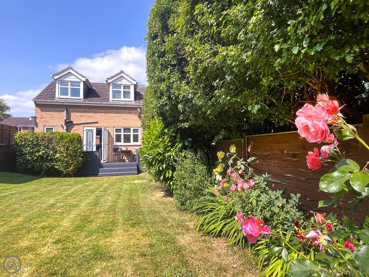 You get two parking spaces on the driveway. Out the back there's a decked area with a table and chairs. It gets the sun in the morning.