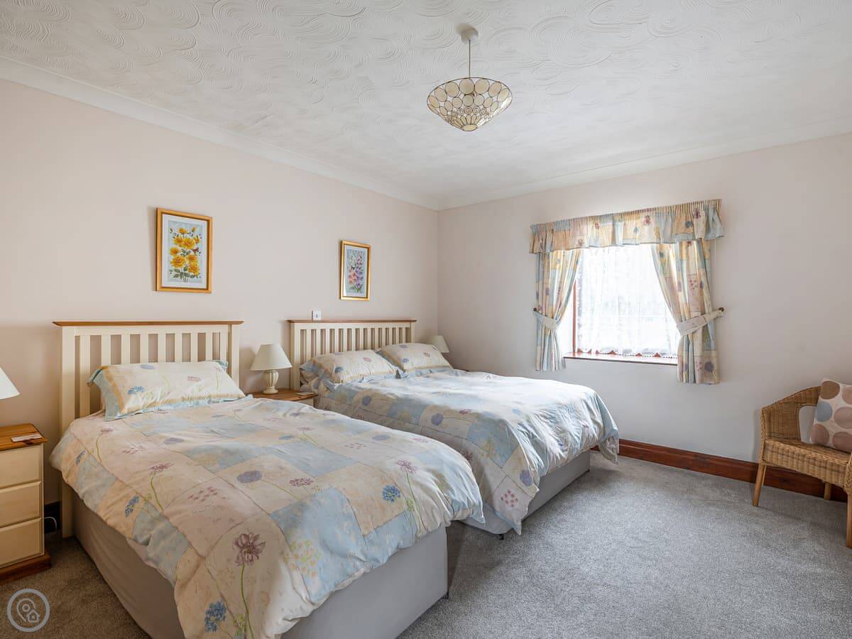 The cottage sleeps five. It's got two bedrooms – one has a four-poster double bed, the other has a double and a single bed. There's one bathroom with a bath and a shower over it. It's rated 4 Star.