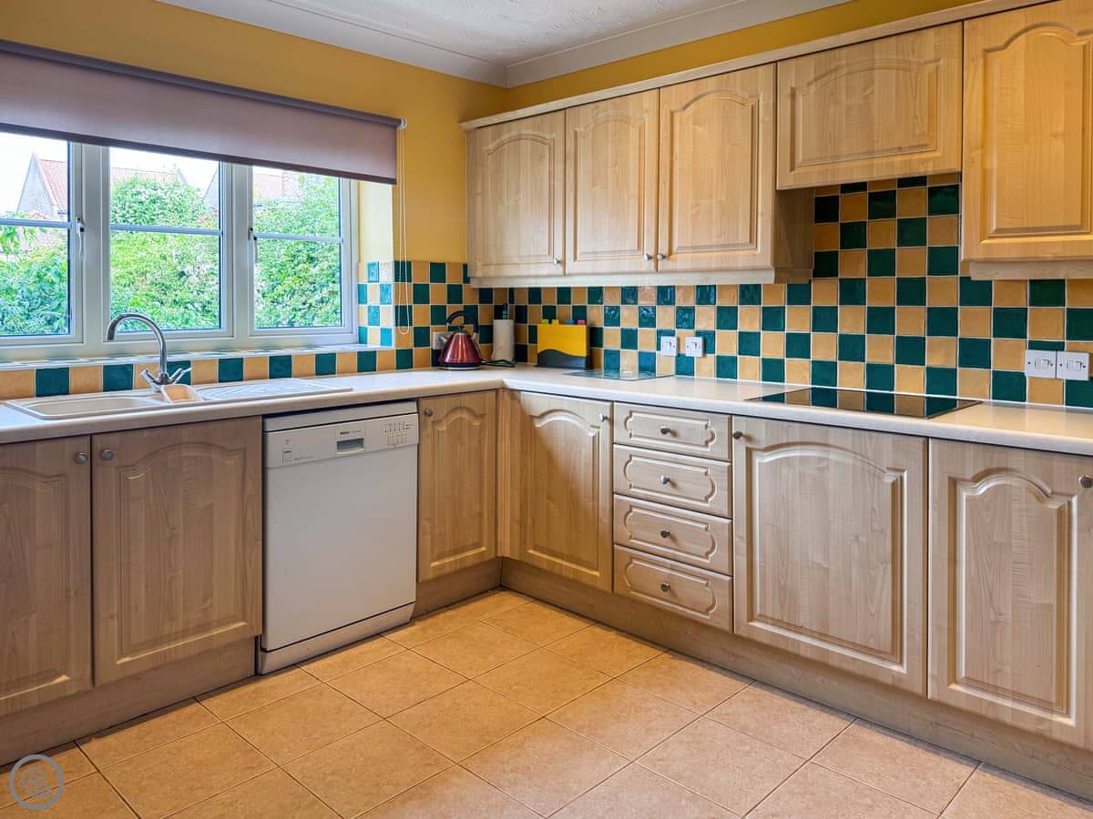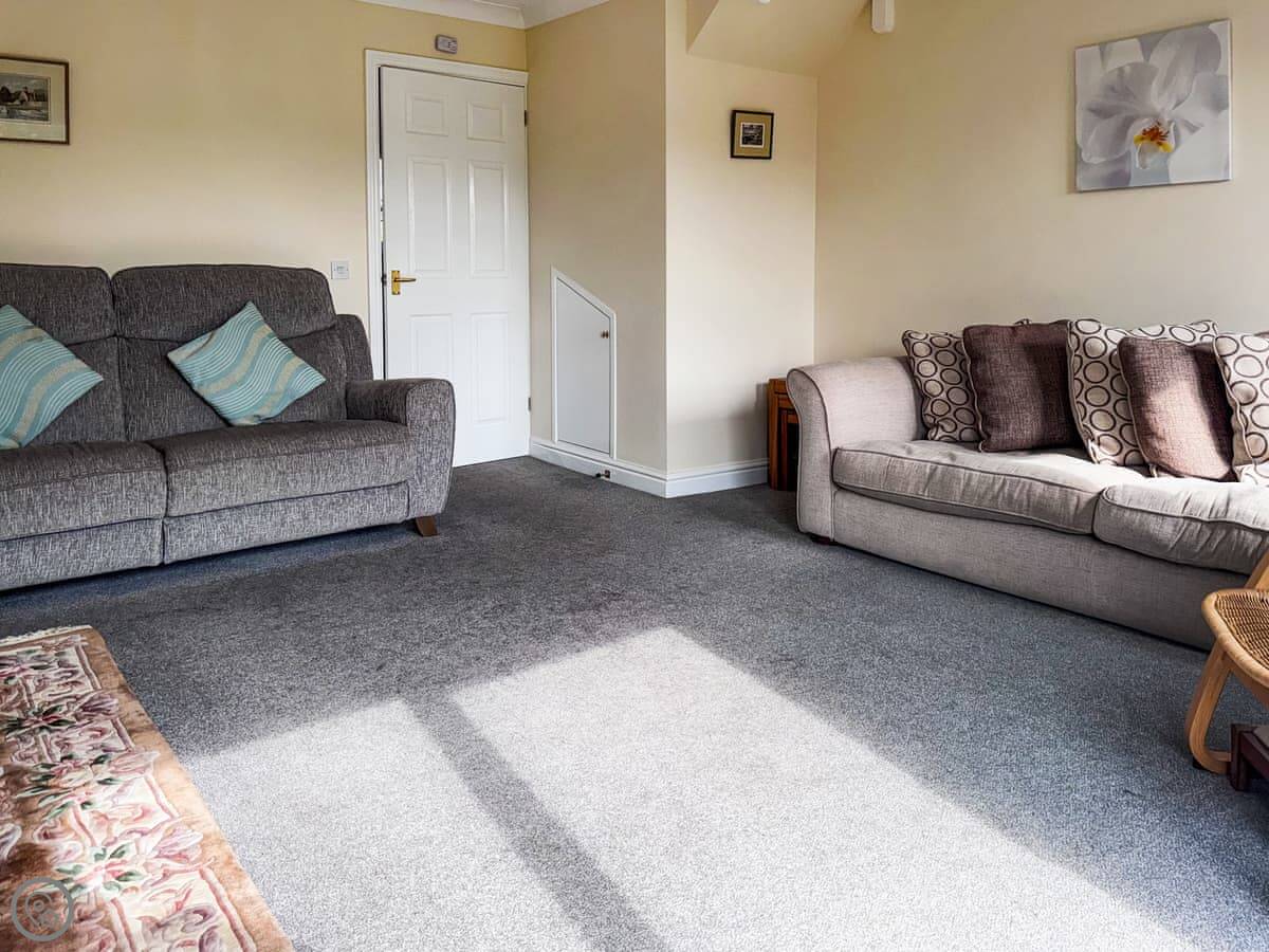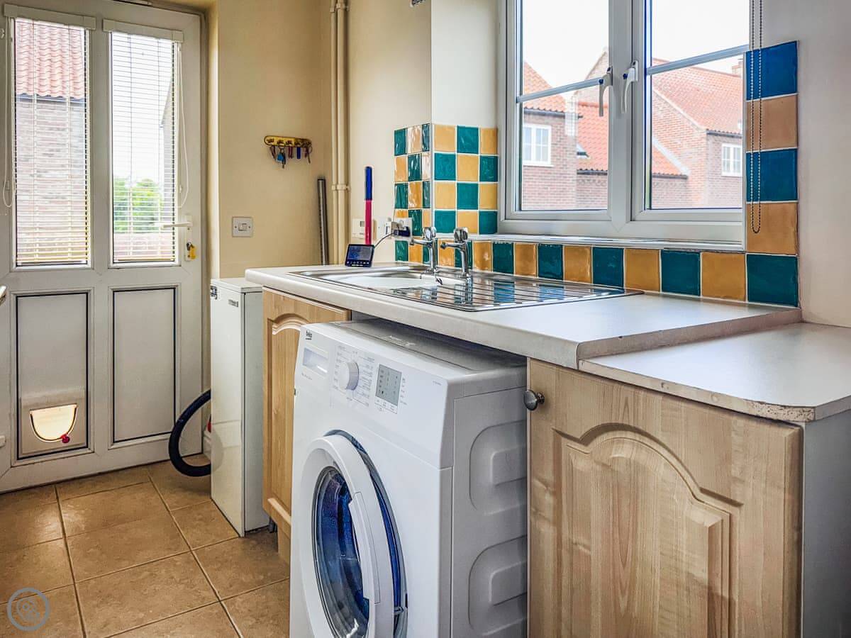 It's got a 3 Star rating. That means it's comfortable and well-equipped, not a show home. The rooms are a good size. The kitchen is big enough for a few people to be in there without getting in each other's way. There's a separate utility room with a washing machine.