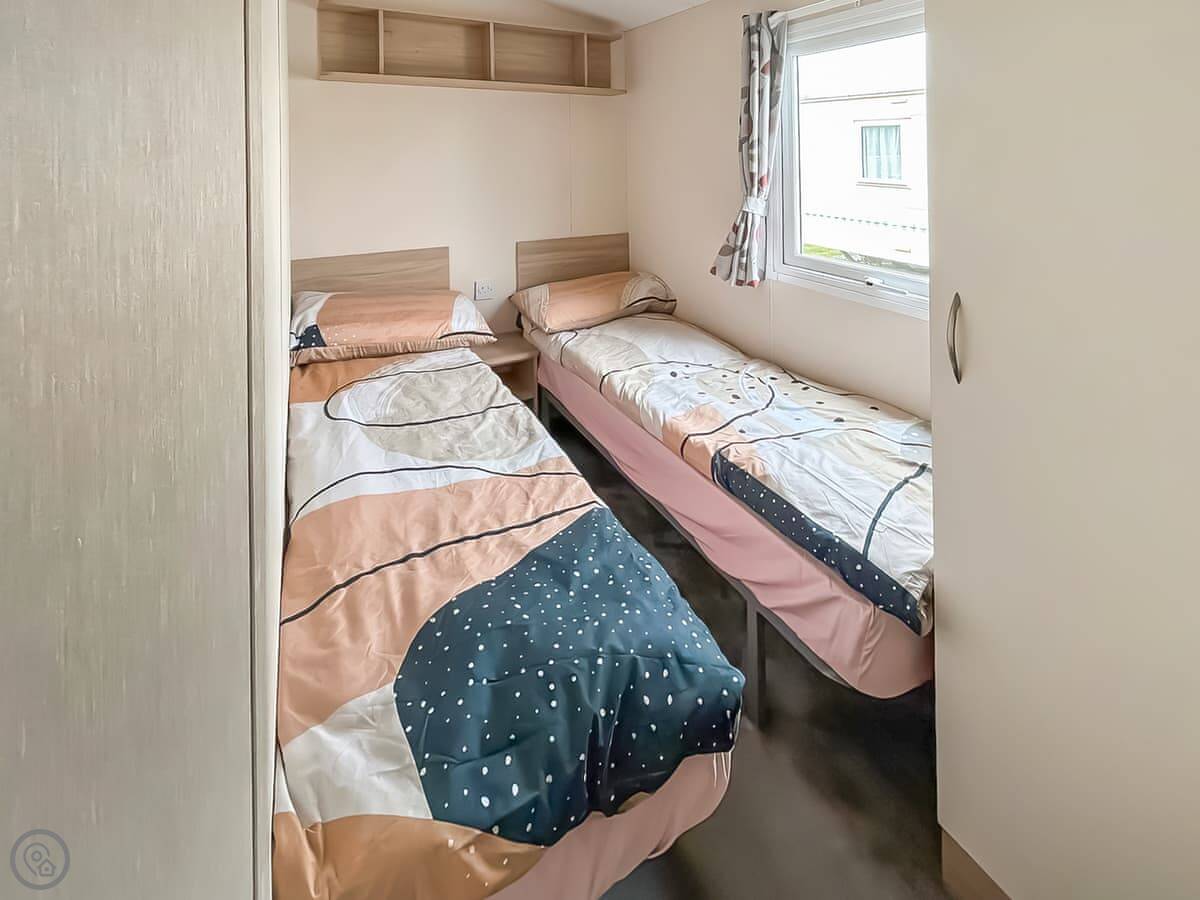 Baillies Retreat is a bungalow on the edge of Chapel St Leonards. It’s one of two side-by-side. You get your own garden, which is just a patio with a fence, but it’s private. Inside, it sleeps six people. Three bedrooms, one bathroom. It’s got a 4 Star rating, so it’s well equipped and tidy.