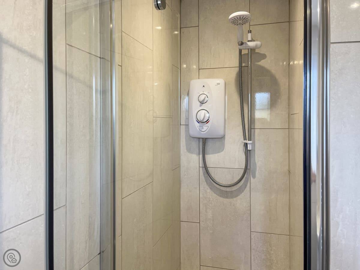 It sleeps four. Two bedrooms, one shower room. It's got a 4 Star rating, which means it's in good condition. The main bedroom is a decent size with a king bed. The other room has bunk beds. The top bunk is only suitable for kids over six.