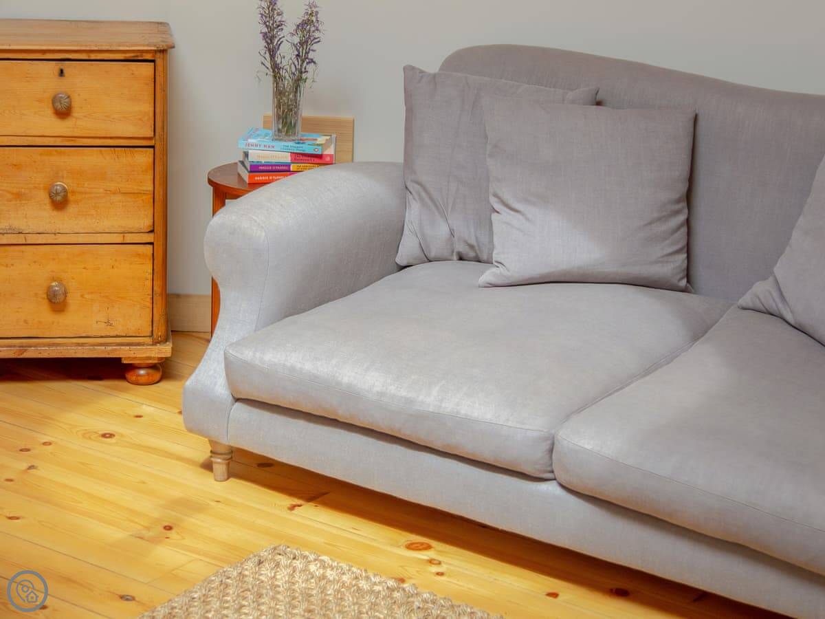 It sleeps four. One room has a super king bed under that window. The other room has two singles. There's one bathroom with a hot shower. The whole place is detached and private.