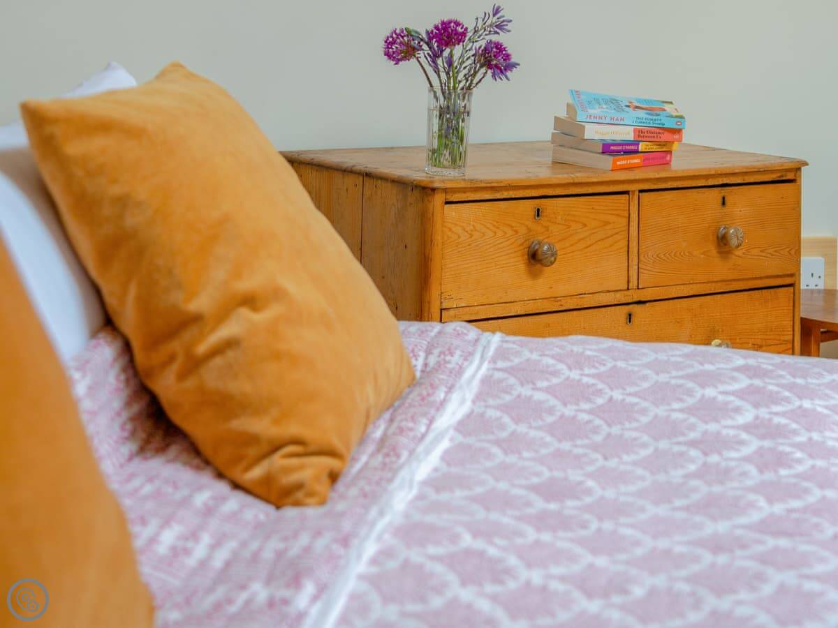 It's on a working farm but feels separate. There's a pub you can walk to in a few minutes. It's a proper local. Bridport is about ten minutes by car. They've got a good market on Saturdays.