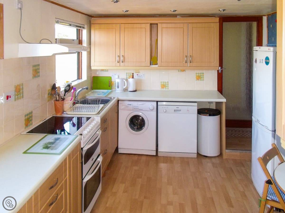The main room has a sea view. It's open plan with the dining area. There's a conservatory on the front where you can sit and watch the sea. The kitchen has what you need. There's a dishwasher and a washing machine.