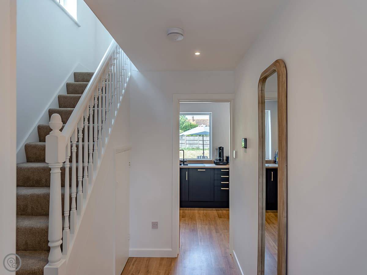 Inside, it's open plan downstairs. There's a woodburning stove which works. The kitchen has a dishwasher. There's a TV and wifi. We include all the bedding and towels.