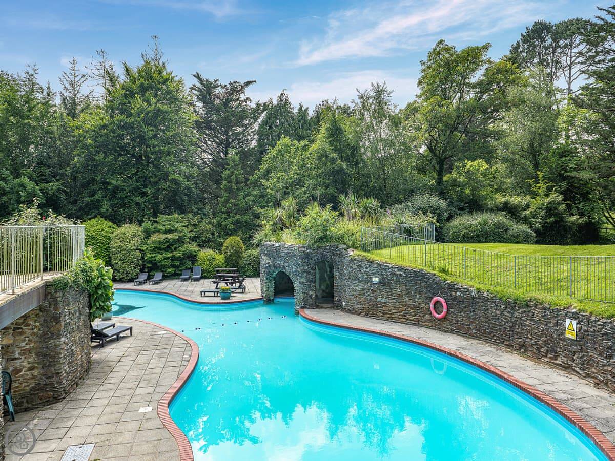 The main thing here is the on-site facilities. There's an indoor pool and an outdoor one for summer. A small gym, a tennis court, a games room, and a fishing lake. There's a kids' play area and a walled garden. It's all there if you want it.