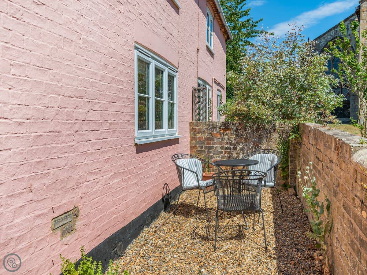 The Pink Cottage is in Bottisham. It's a terraced house, right in the village. The name is accurate, it's pink. You get your own small garden at the back, and there's a bit of communal garden space too.
