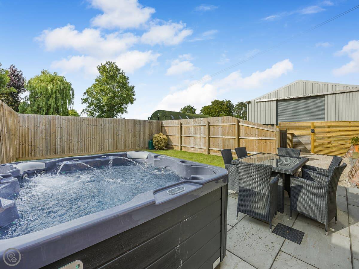 The garden is enclosed. There's a patio with a hot tub and a BBQ. You can park right next to it.