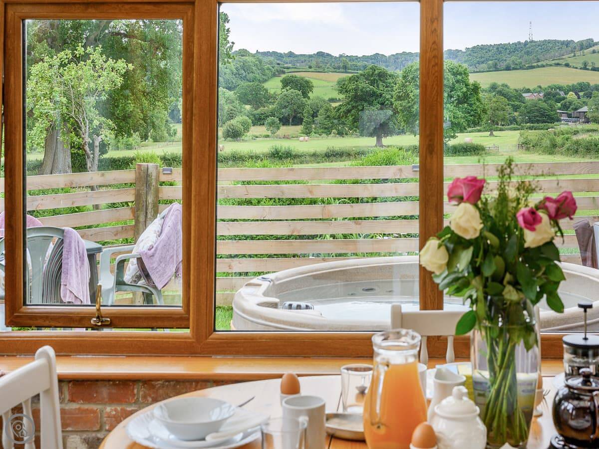 It's got a 4 Star rating. That means it's well looked after and comfortable. The living area and kitchen are open plan. There's underfloor heating so it's warm underfoot. The dining room has a large window with a view of Bulbarrow Hill.