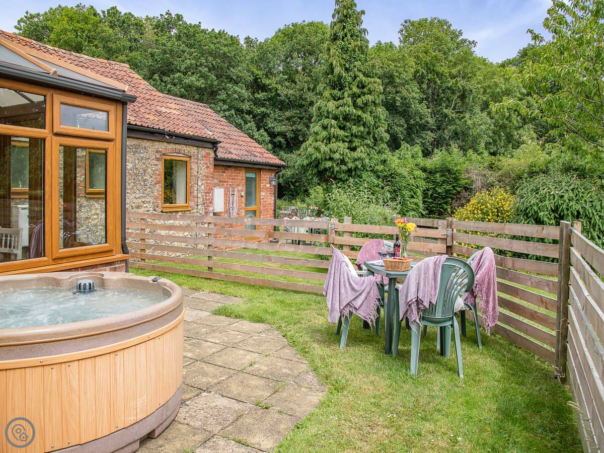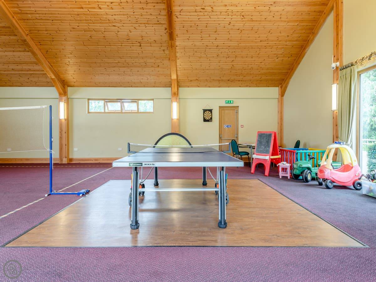 Outside, there's a private patio with a hot tub. You also get access to the shared facilities on the farm. There's an indoor heated swimming pool, a games room, and a kids' play area. There's a fishing lake if you're into that. We do have electric vehicle charging points.
