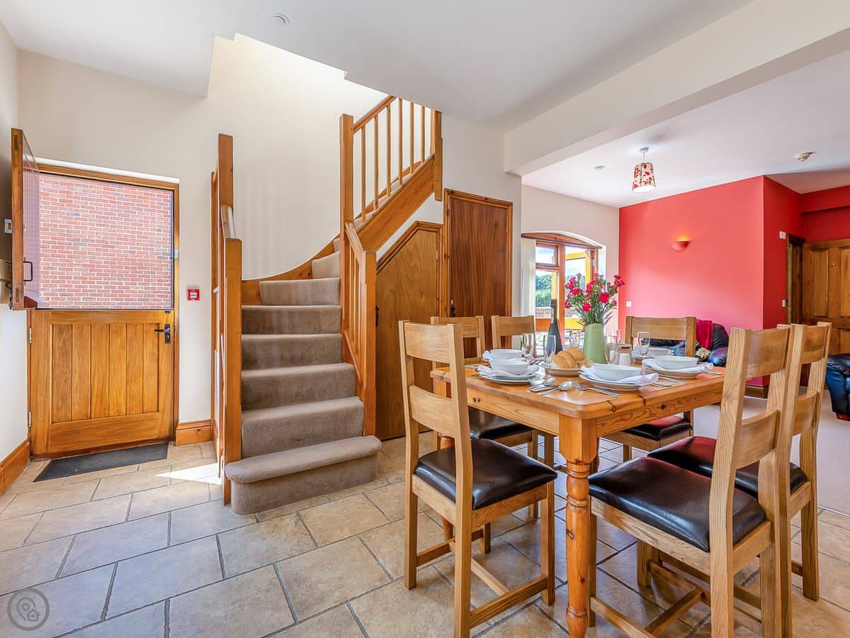 It's quiet here. You look out over fields. For a walk from the door, you can follow the farm tracks. For something bigger, the National Trust has several places nearby. We're about half an hour from the coast.