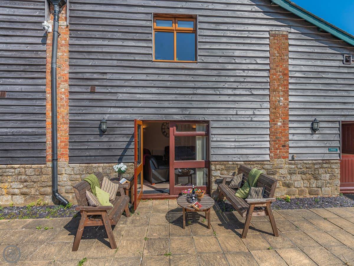 The Granary is a converted barn on our farm, near the hamlet of Woolland. It's one of several cottages here in the main Victorian barn building. You get your own front door and a private patio with a table.