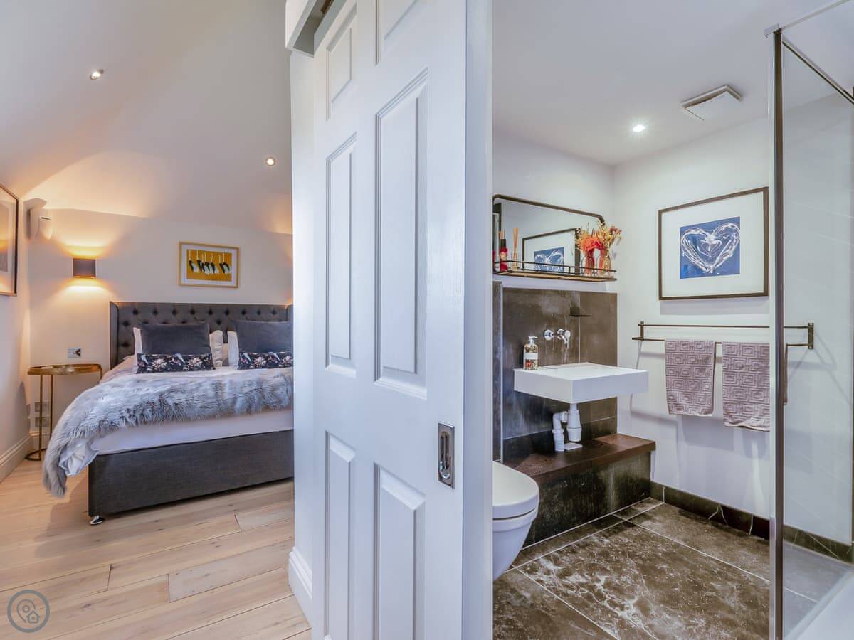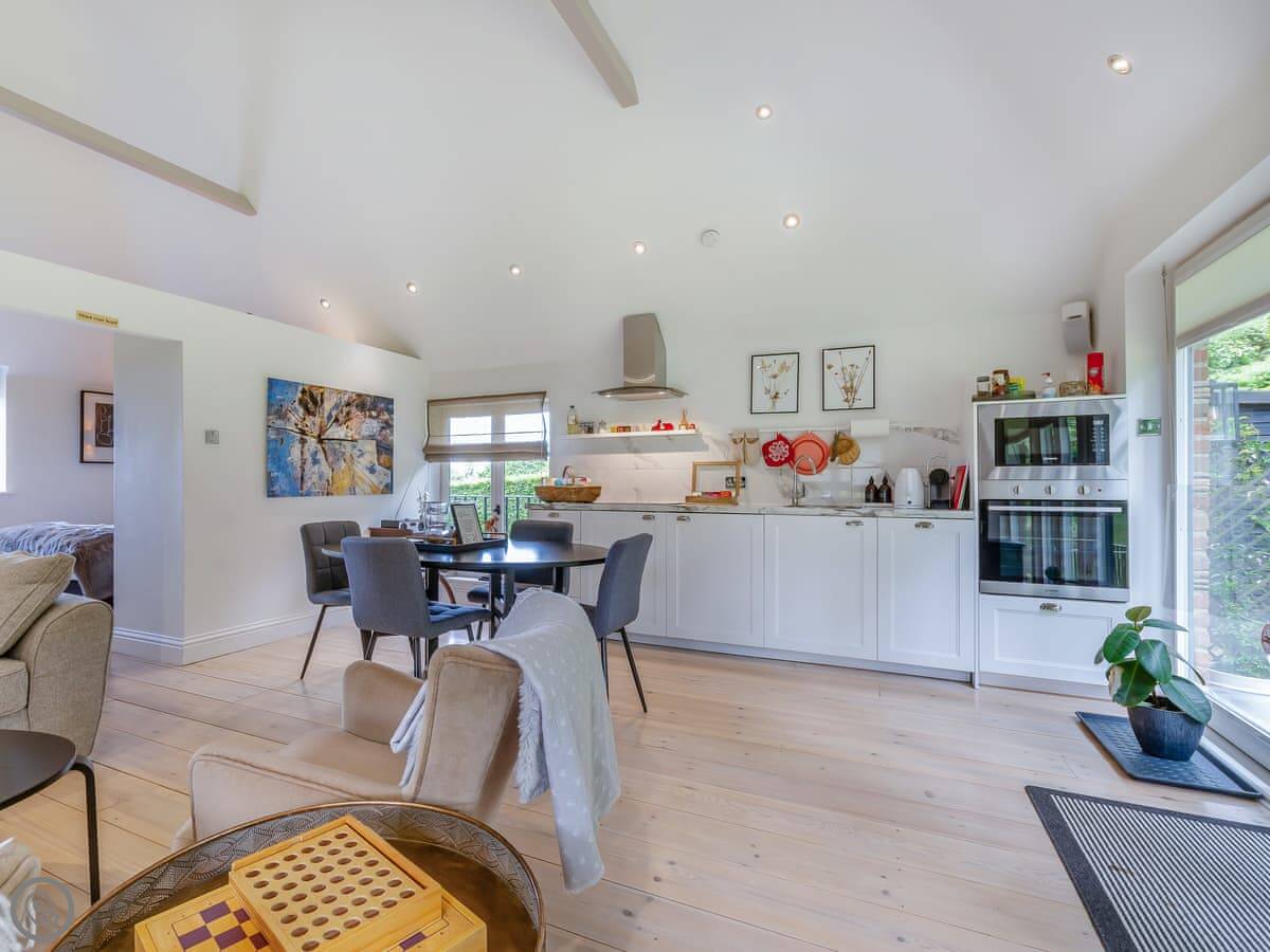 Fir Tree Apartment is a one-bedroom place for two people, in Crowborough. The town is up on the highest point in East Sussex, so you get good views. It's on the edge of Ashdown Forest.