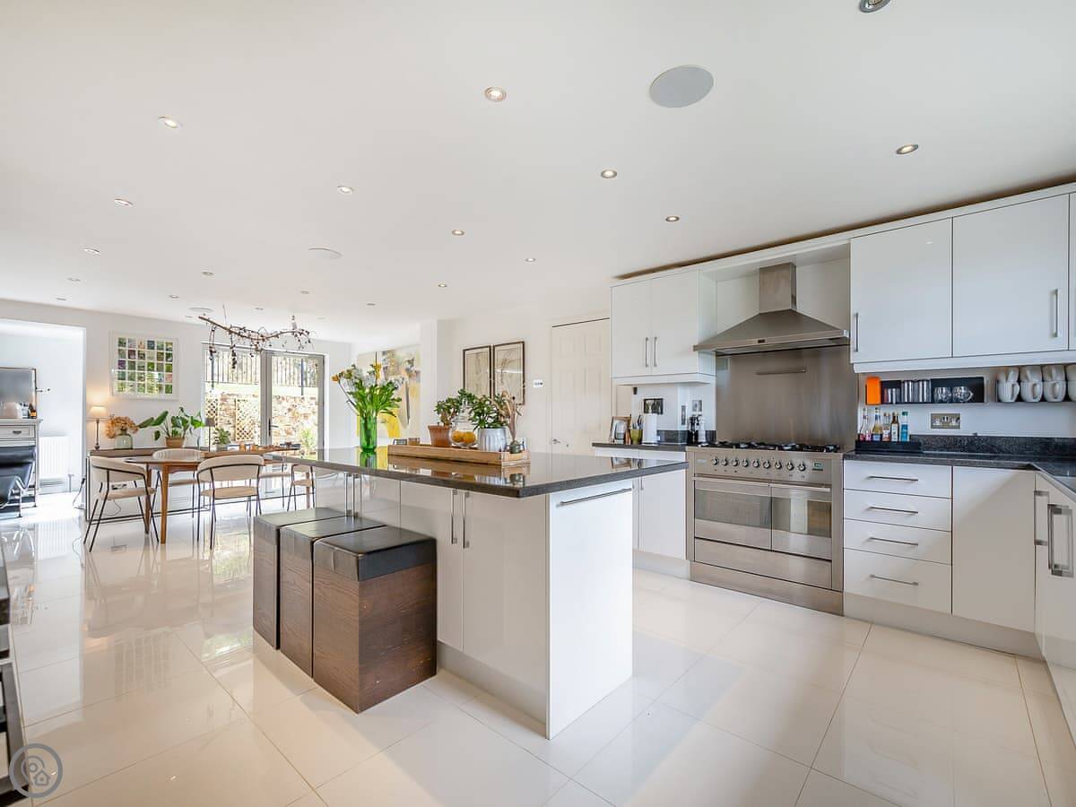 This is Fir Trees in Crowborough. It's a detached house, so no one attached to the side of you. Sleeps eight, four bedrooms. Has four bathrooms, which is useful with that many people.