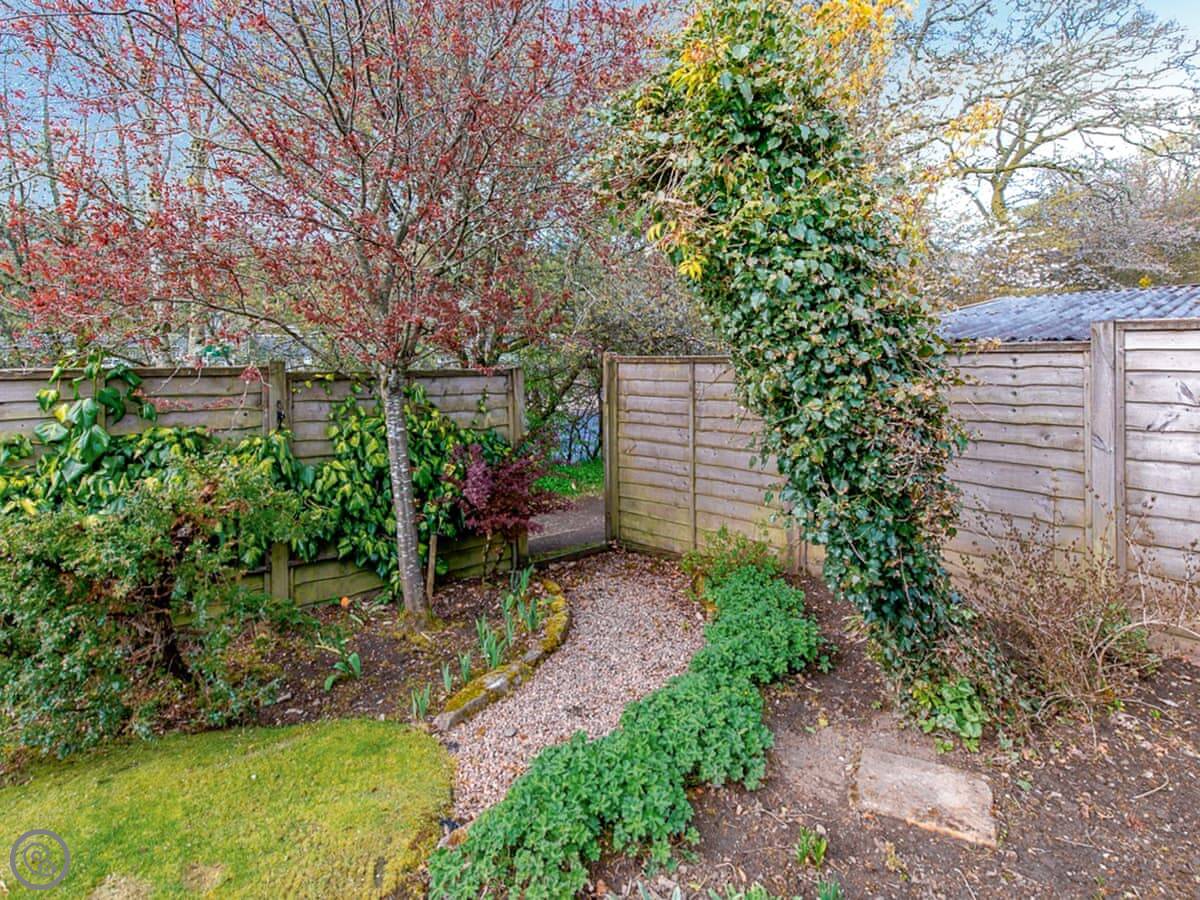Out the back, there's a private, enclosed garden. Patio doors open onto it from the living room. There's a garage for storing bikes or golf clubs.