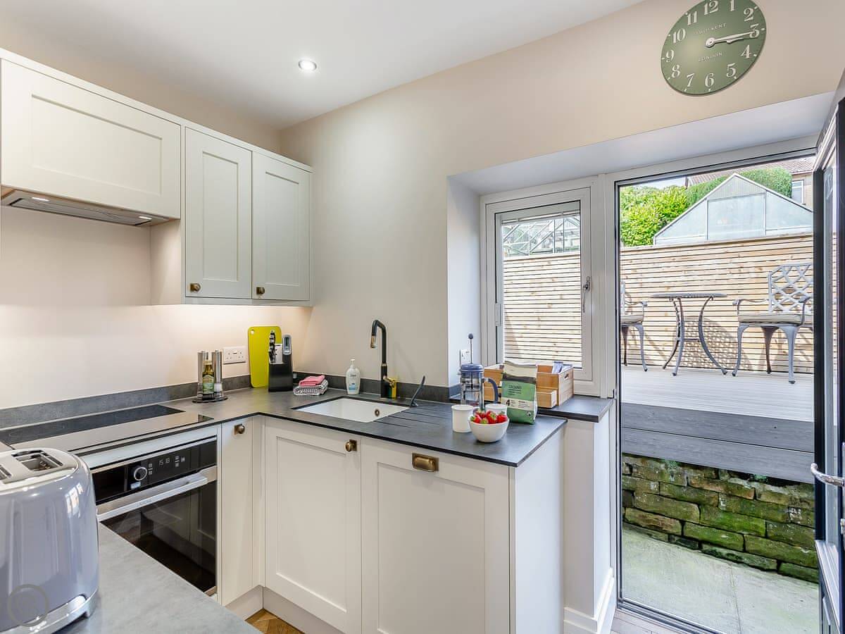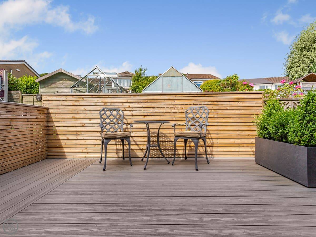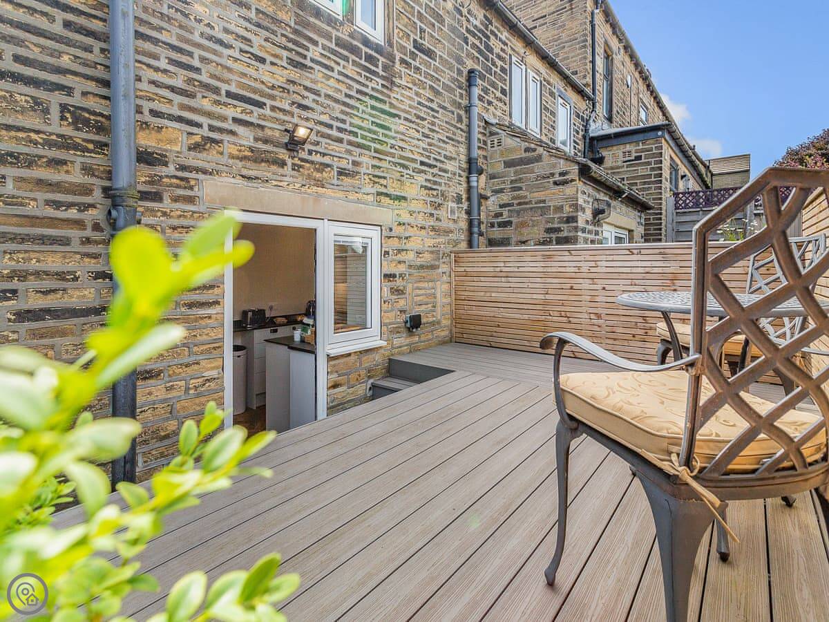 The front garden is enclosed and gets the sun most of the day. It looks onto the village playing fields, which is handy if you bring a dog. There's a decked area out the back for a morning coffee.