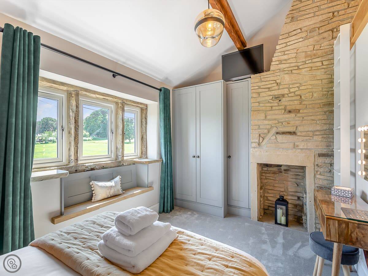 It sleeps four. Two bedrooms and one bathroom. It has a 4 Star rating. The main bedroom has a double bed and a sort of platform up a ladder, which is just a quiet spot to sit. The second room has two singles.