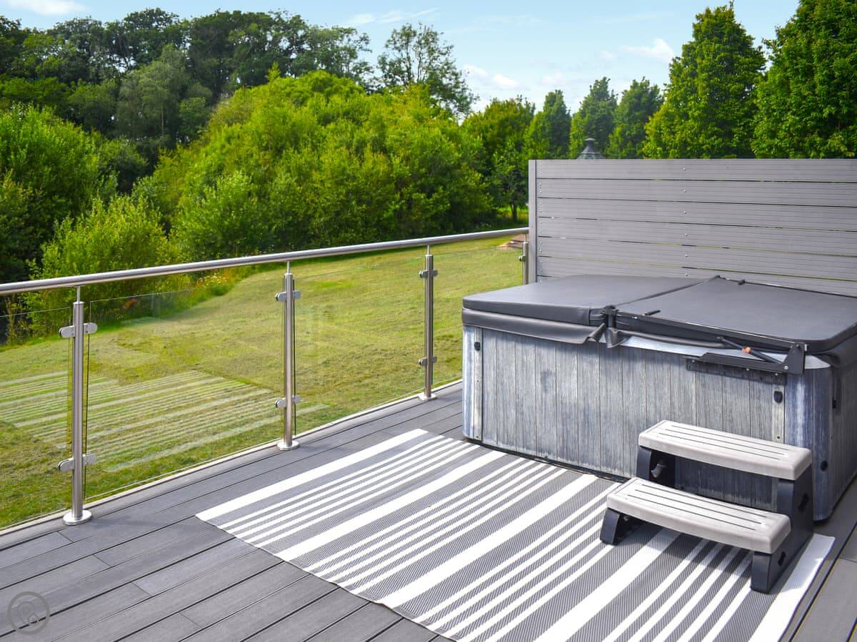 Outside, you have a patio area with a hot tub. It looks out over the lakes. There's a BBQ there for you to use. You can fish in the lakes if you're into that.