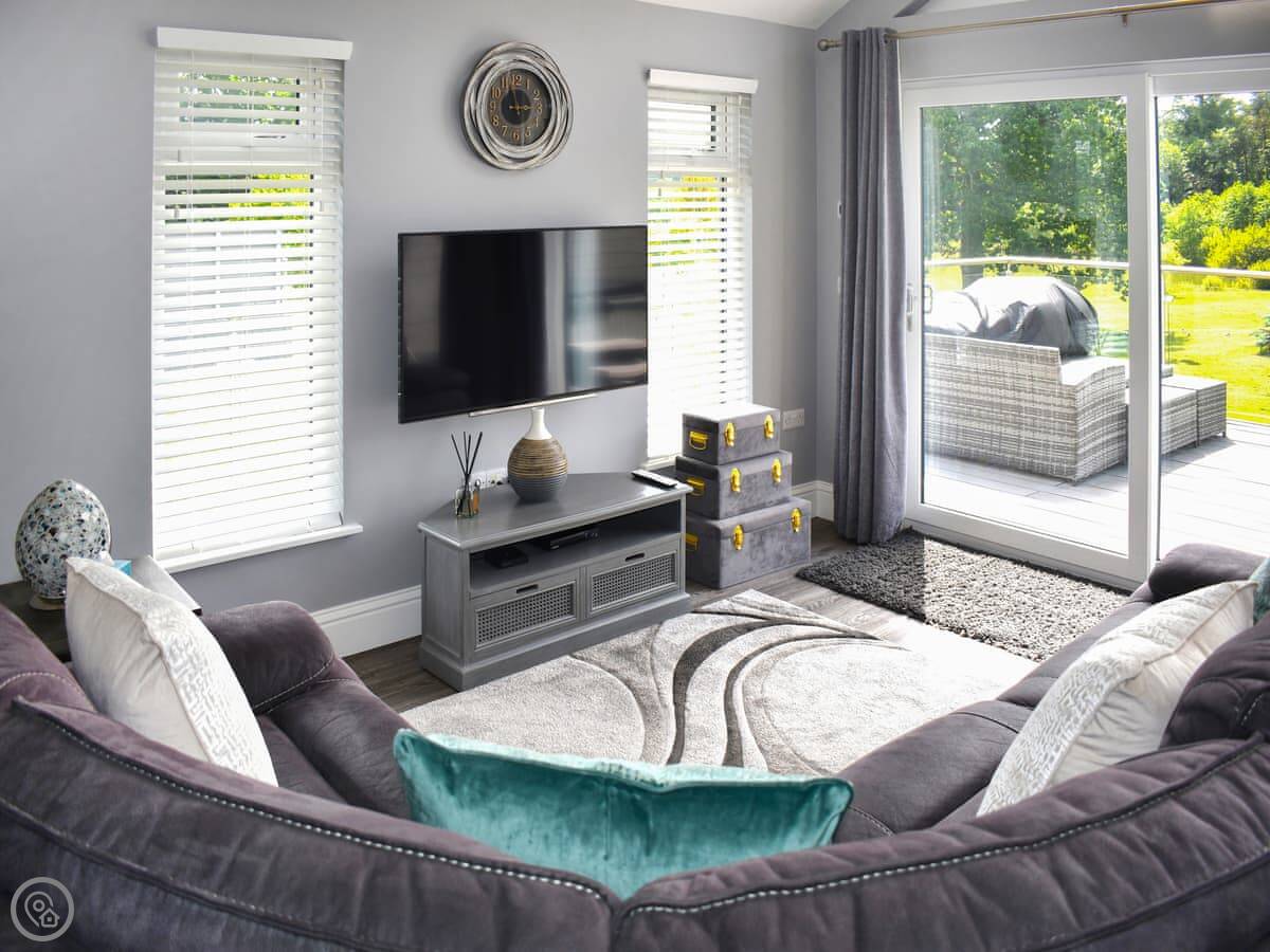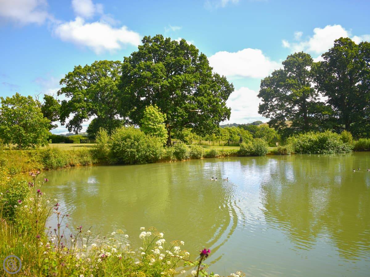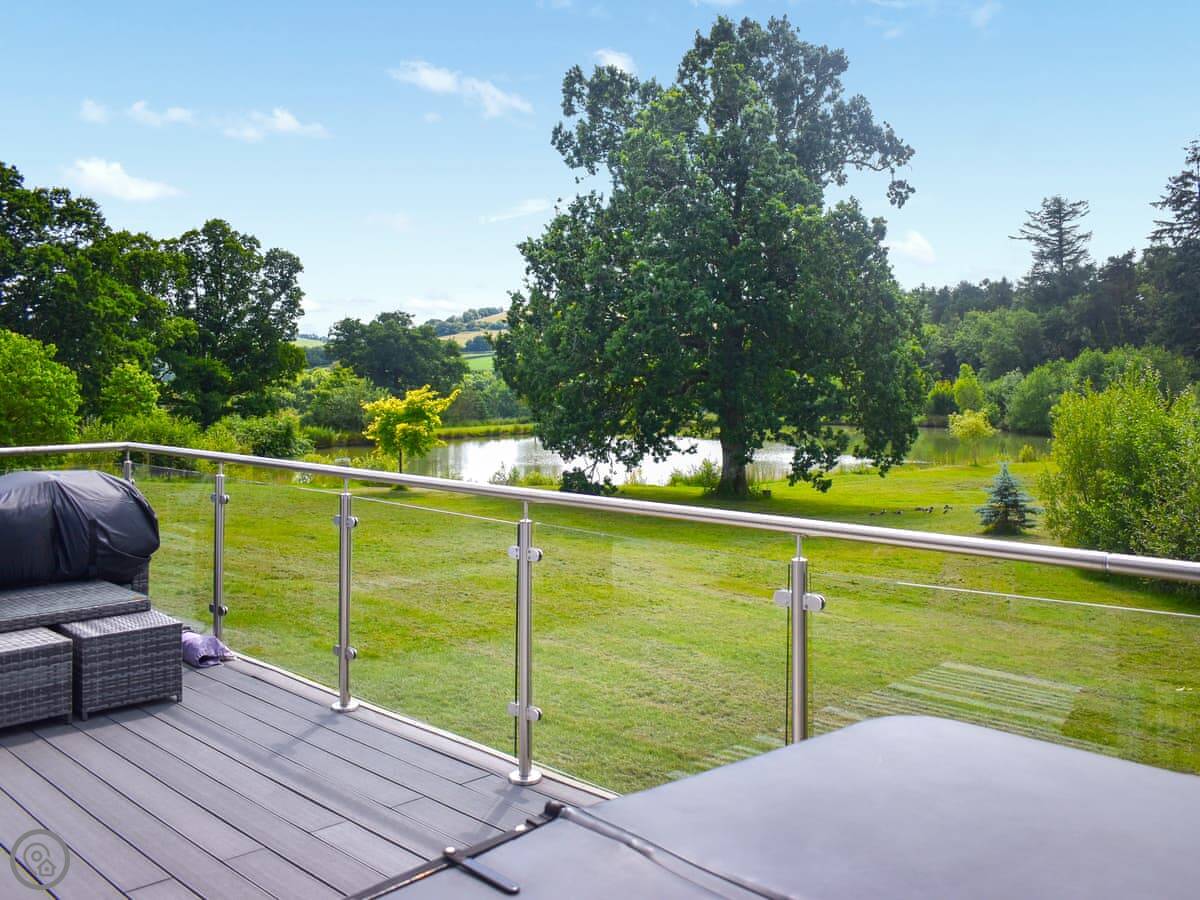Oak Park One is in Shillingford, Devon. It's a detached lodge on a site with a couple of other properties. The main thing here is the space and the quiet. You're down a private track with two carp fishing lakes out front. It feels very separate.