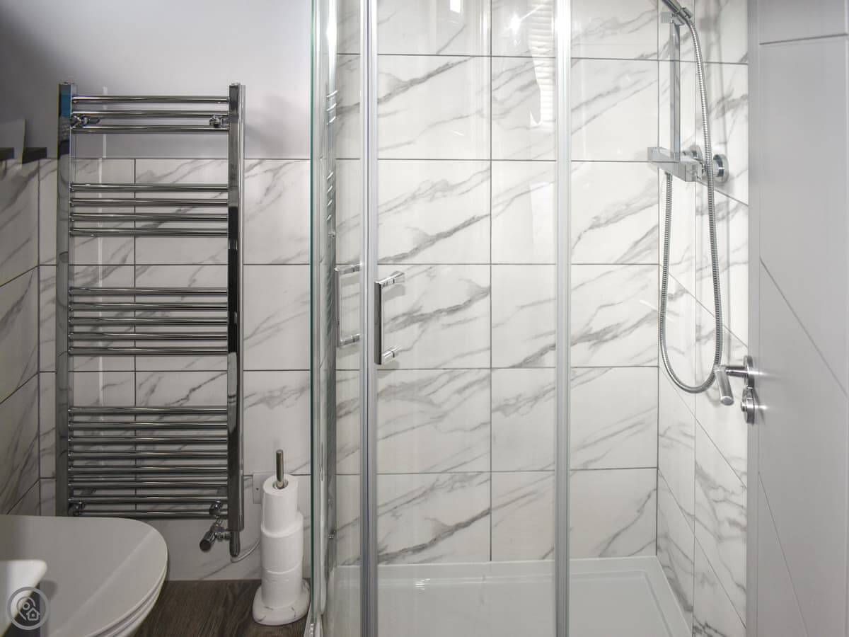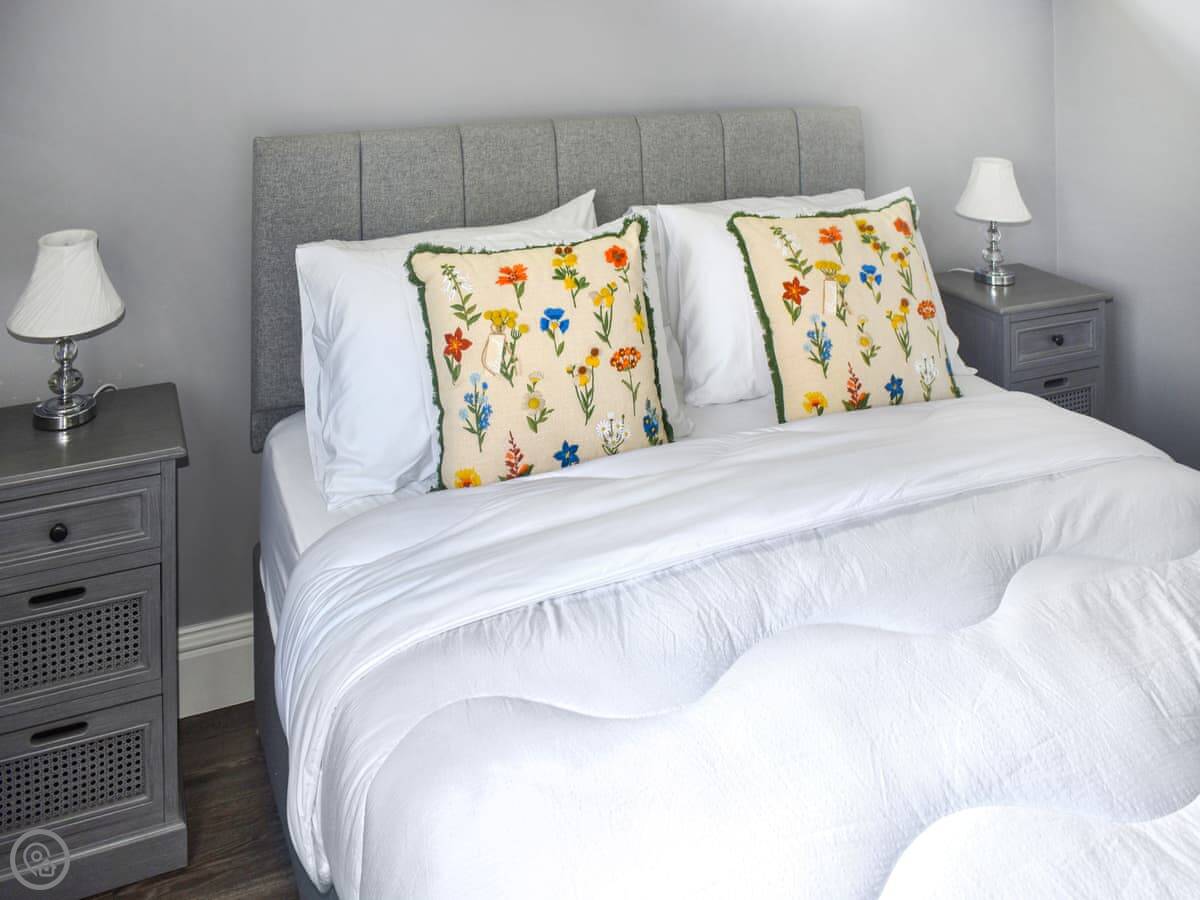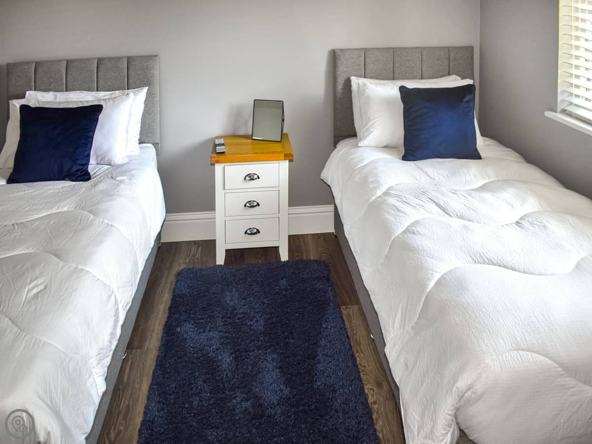 It sleeps six. Three bedrooms, two bathrooms. One bedroom is a kingsize with a shower en-suite. There's a double room and a twin room. It's got a 4 Star rating, which means it's well-equipped and comfortable. Everything is on one level, which is useful.