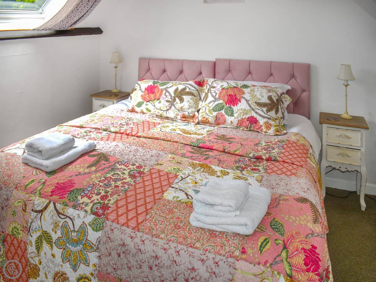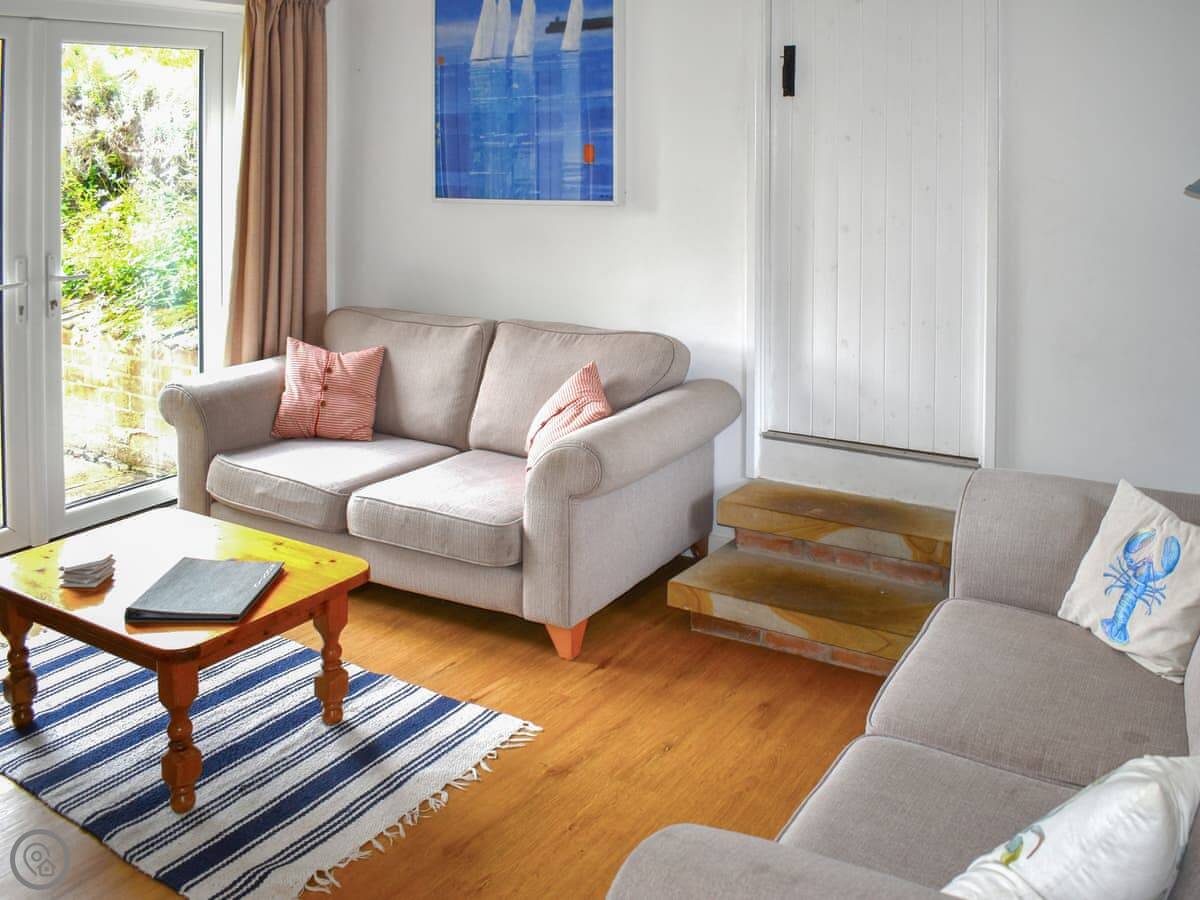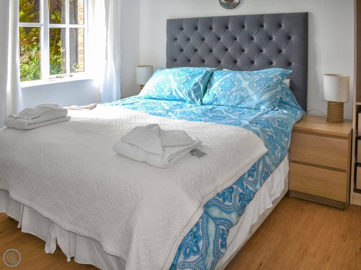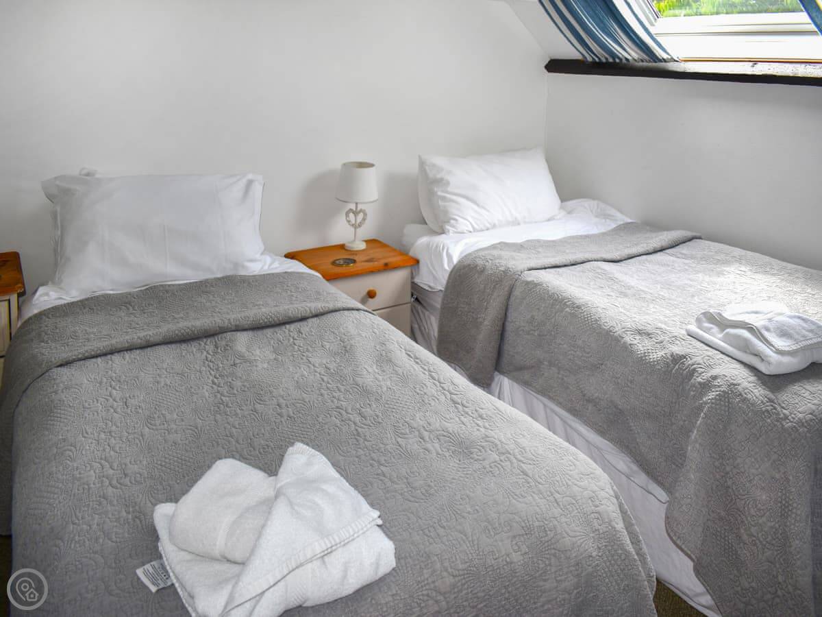 It sleeps six people. There are three bedrooms and two bathrooms. One of the bathrooms is downstairs, attached to the main bedroom. The other bathroom and the other two bedrooms are upstairs. It's got a 3 Star rating, so it's clean and comfortable but not luxurious.