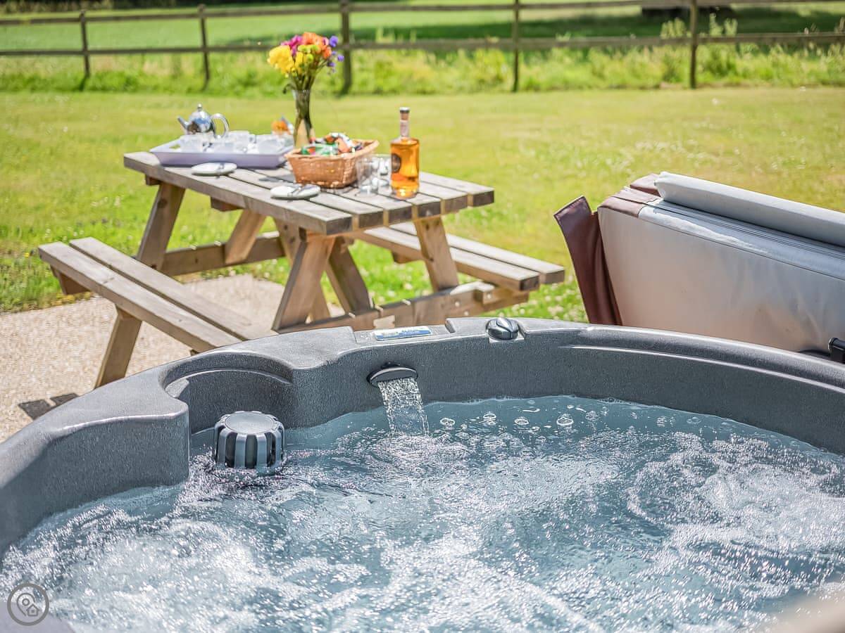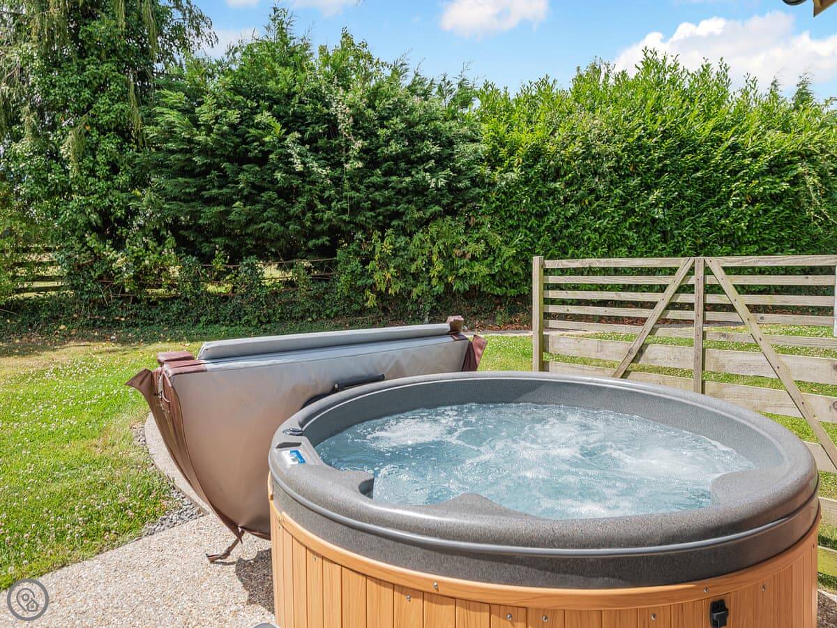 The private patio has a hot tub and some outdoor furniture. The main shared facilities are a big part of the place. There's an indoor heated swimming pool, a sauna, a games room, and three coarse fishing lakes. There's also a play area for kids.