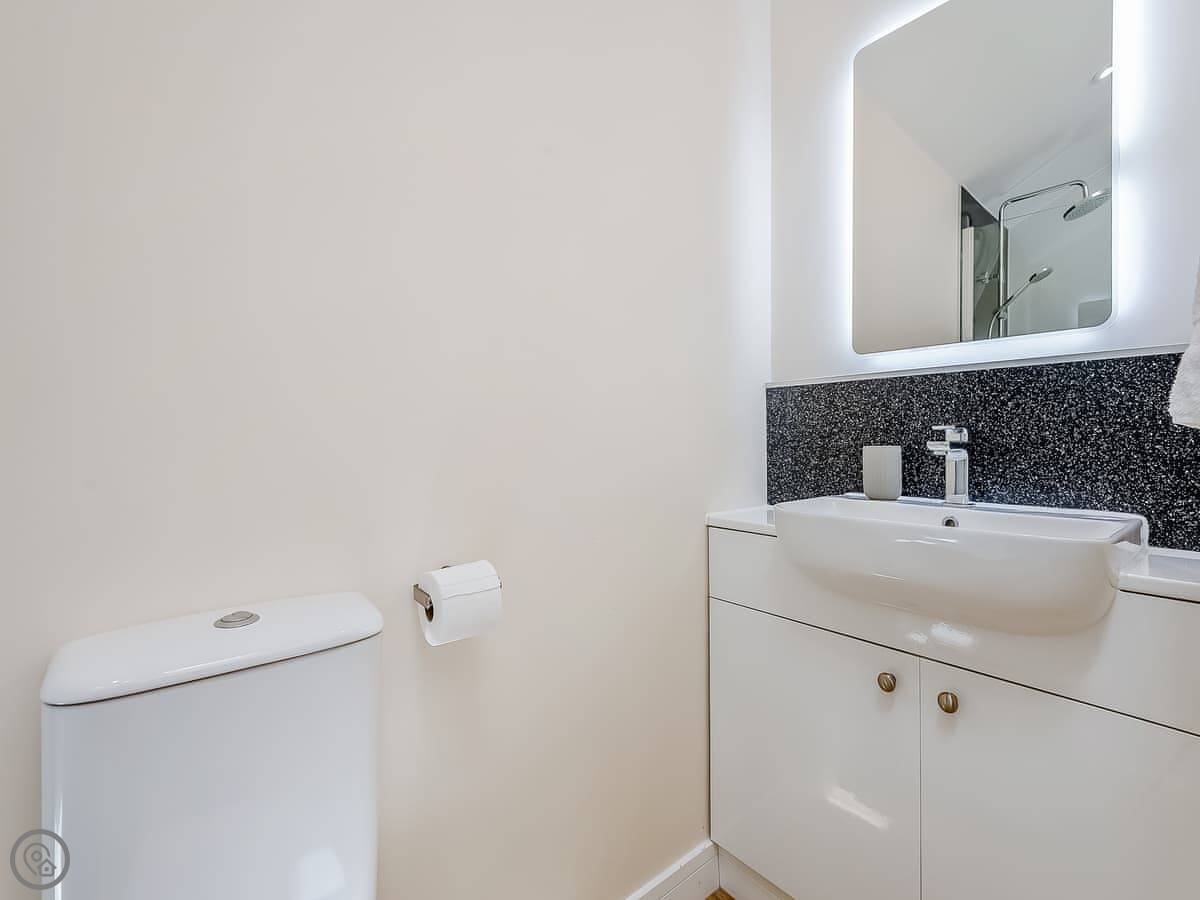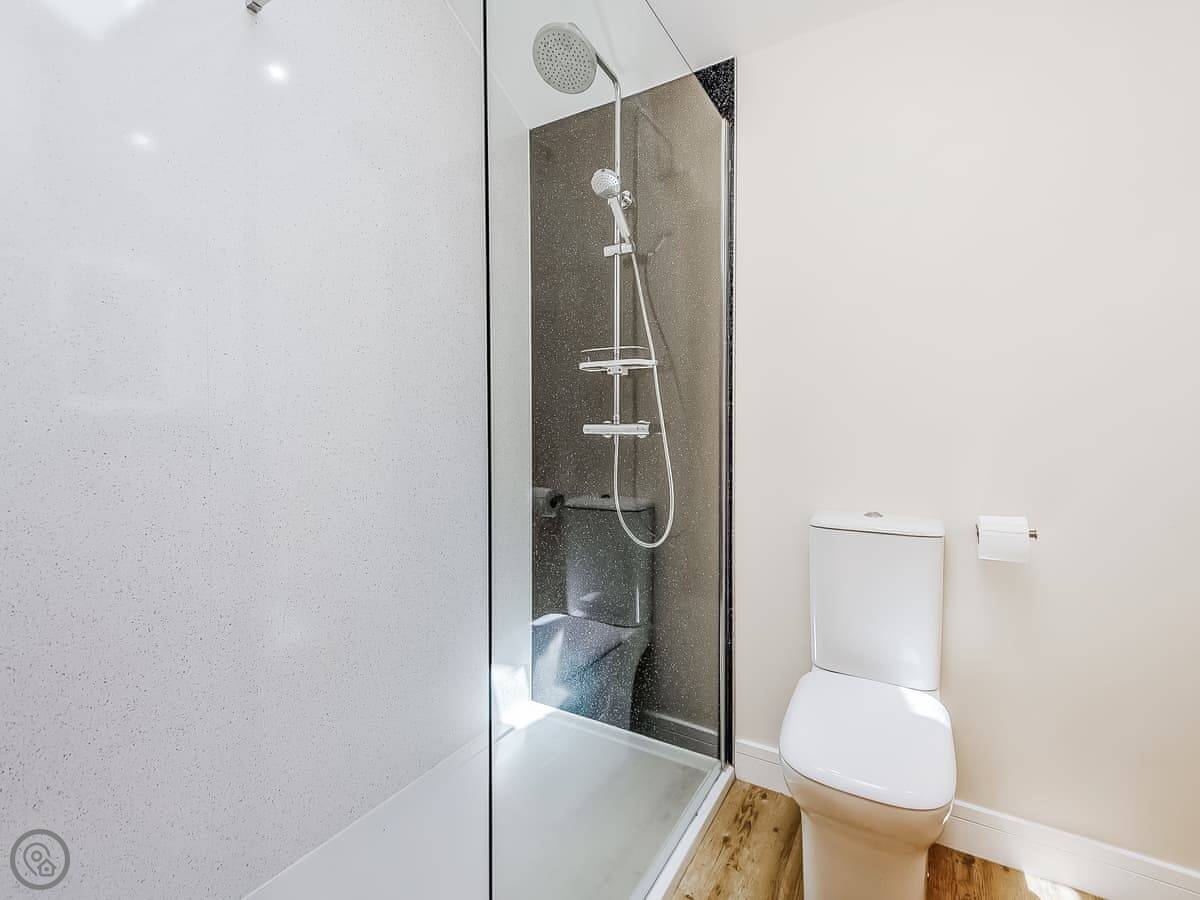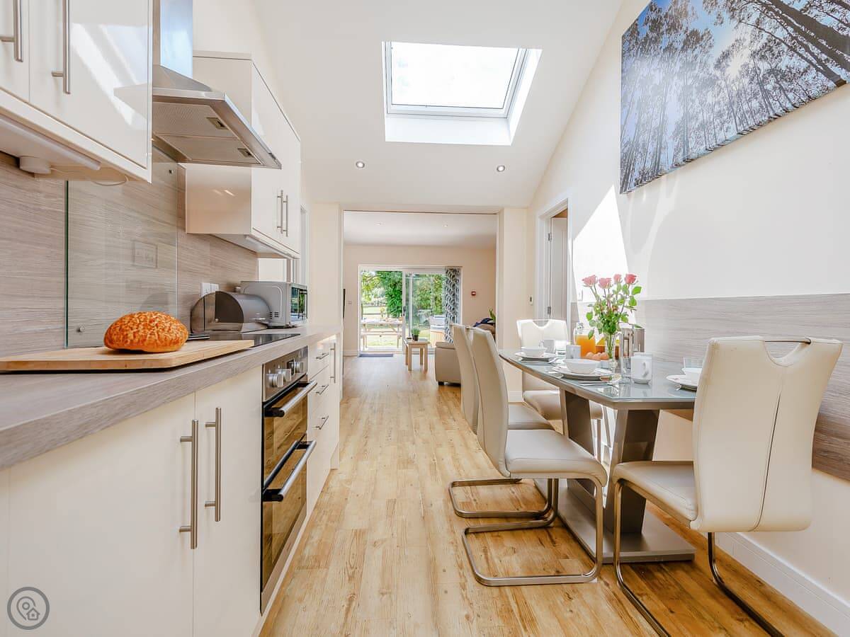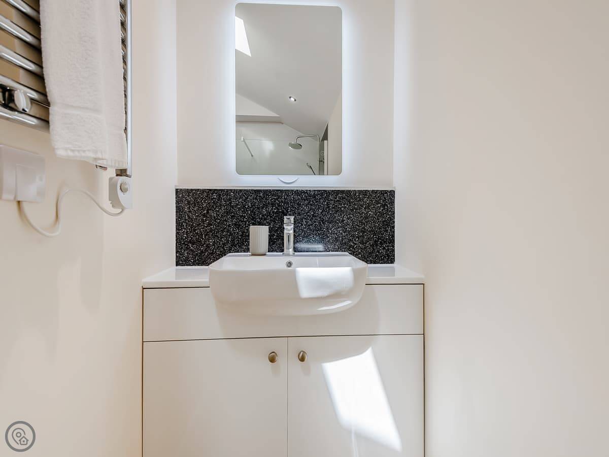 It sleeps six. There are two bedrooms, each with its own bathroom. The open plan living area has a sofa bed as well. It's got a 4 Star rating. It was renovated a few years ago so it's modern inside, with underfloor heating.