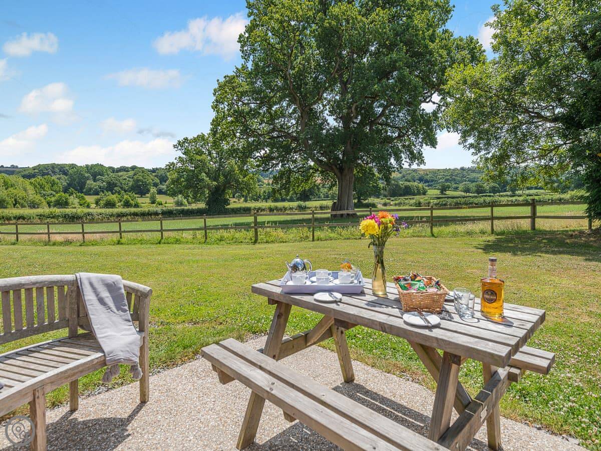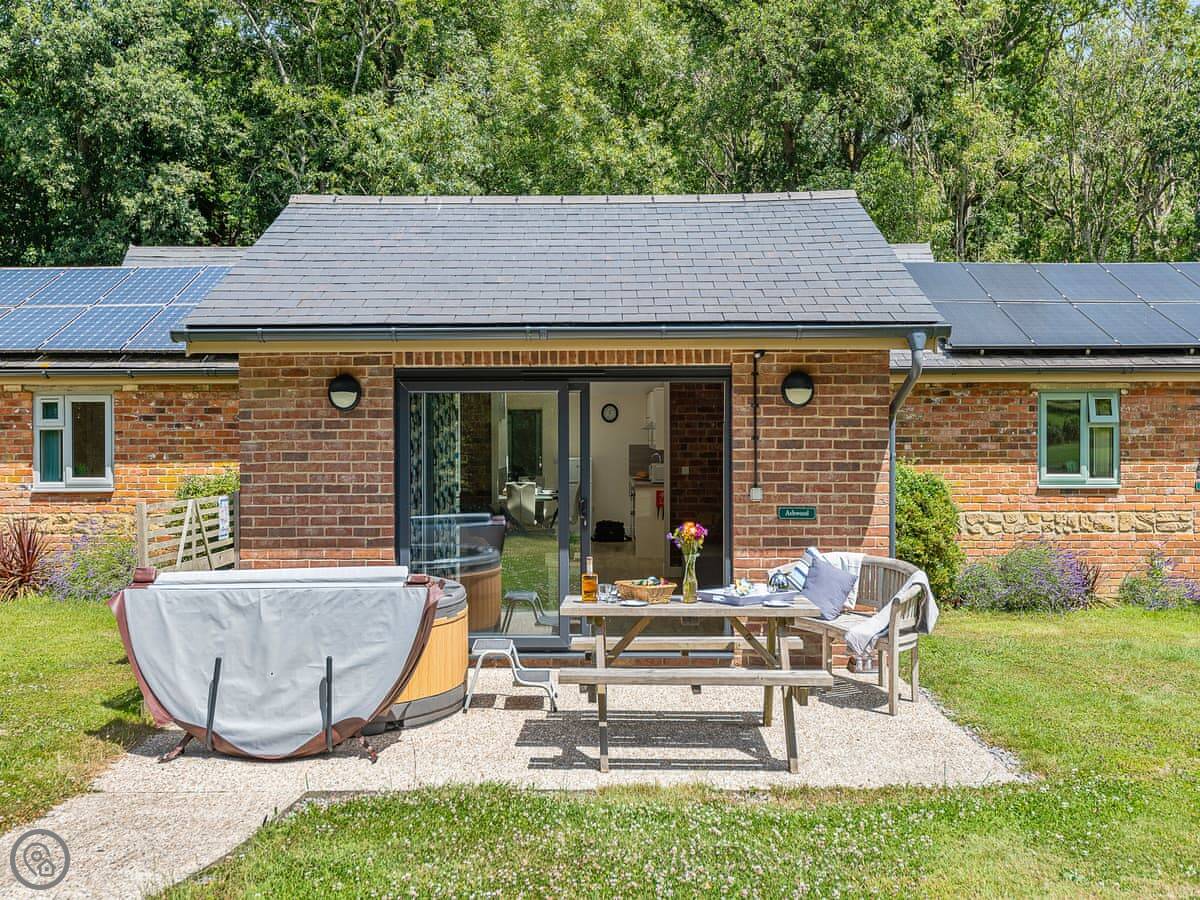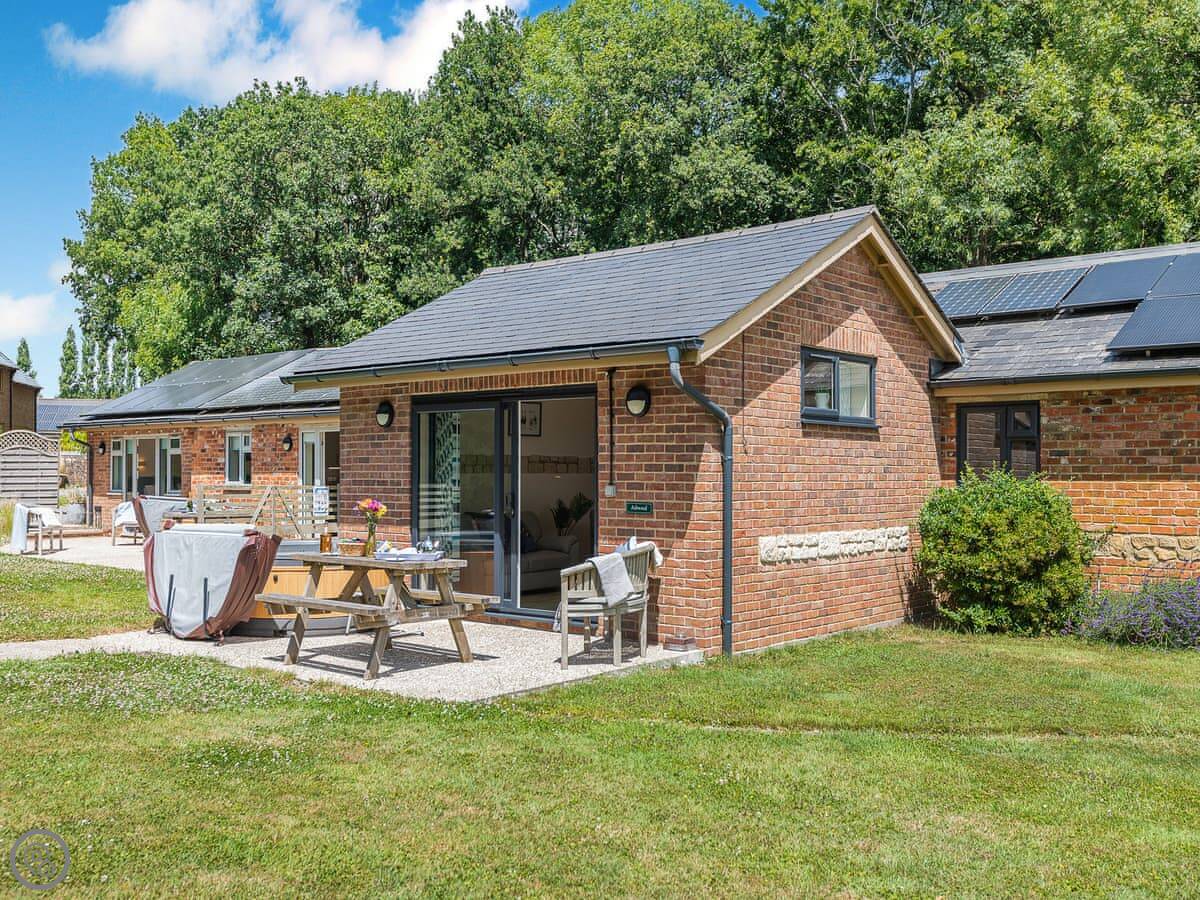 Location wise, it's very quiet. You're in proper countryside. For a walk from the door, you can head out into the estate or the lanes. If you want to drive, the Jurassic Coast is about half an hour away. That's where Durdle Door and Lulworth Cove are.