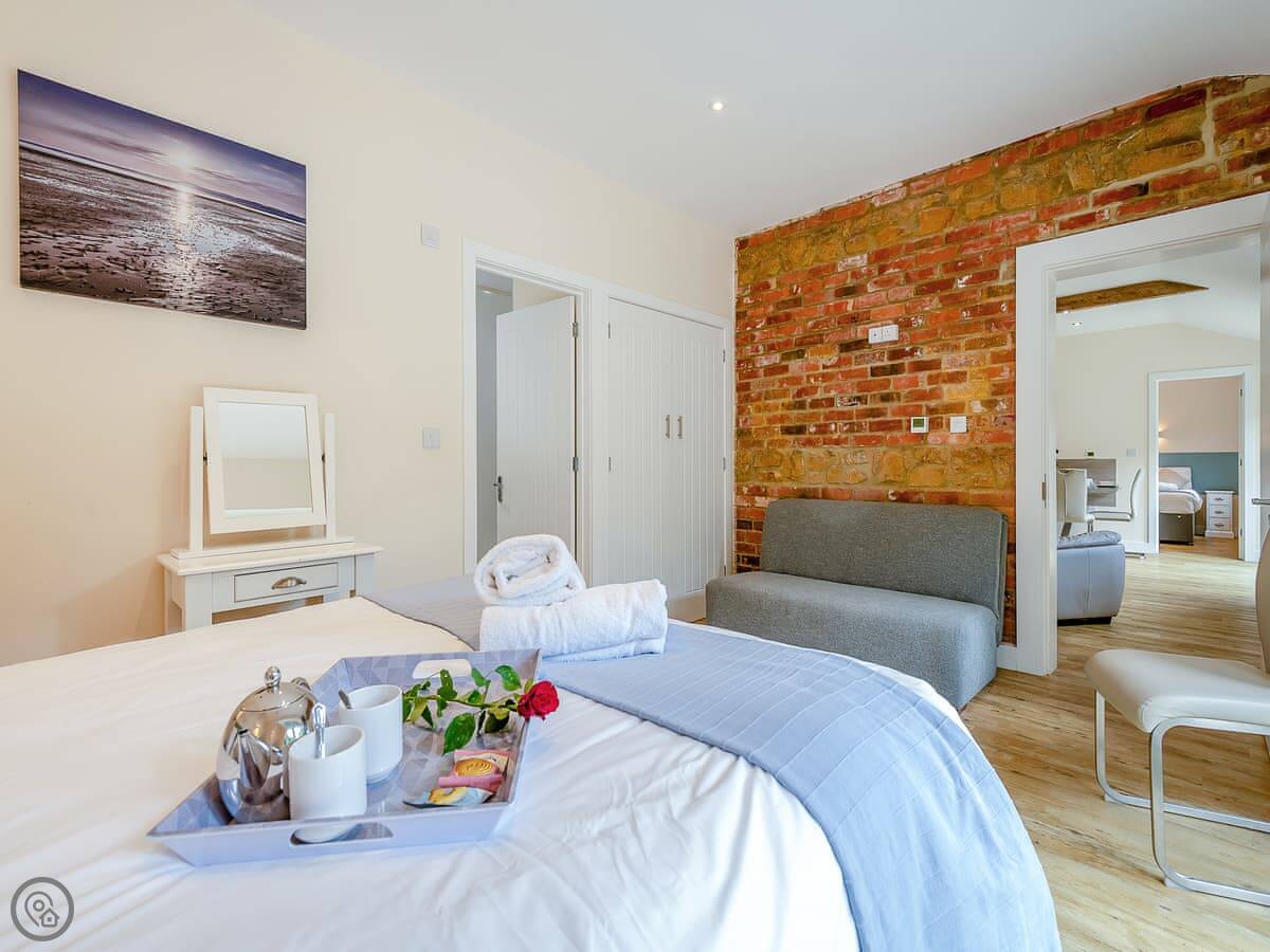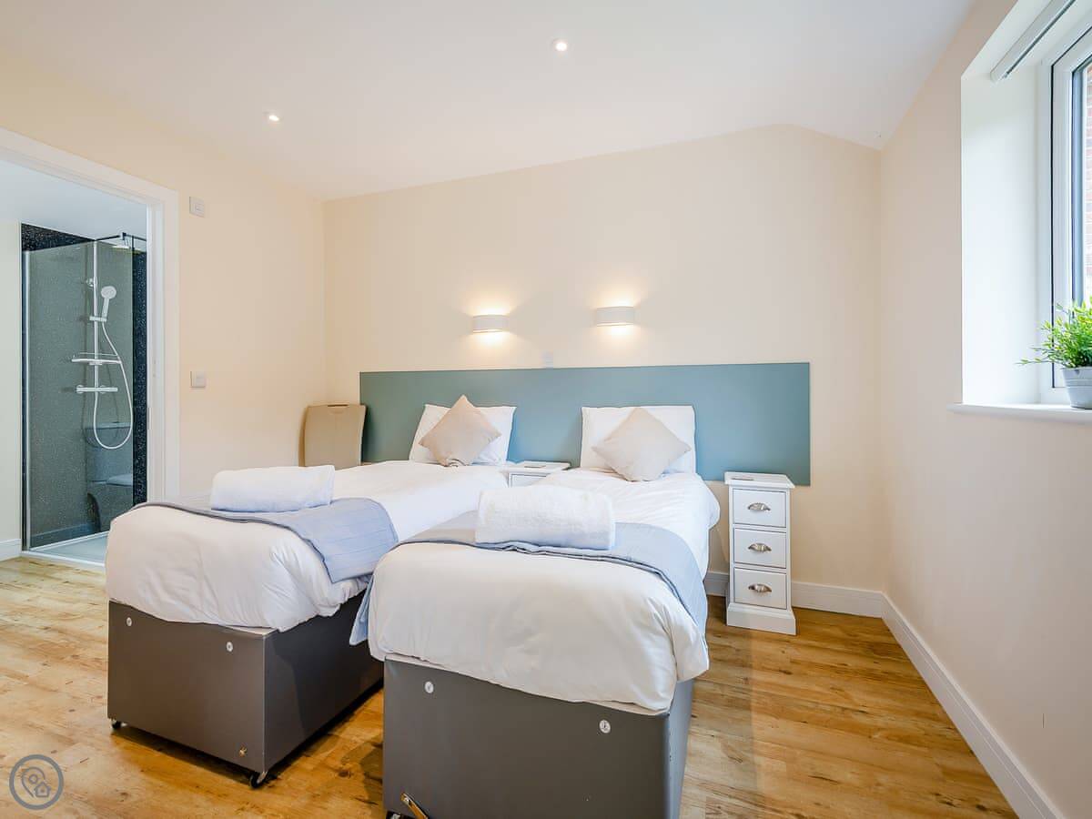 Maplewood is one of the apartments in The Victorian Barn estate, near the village of Woolland. It's a two-bedroom place but it says it sleeps six. Both bedrooms have their own bathroom, which is handy.