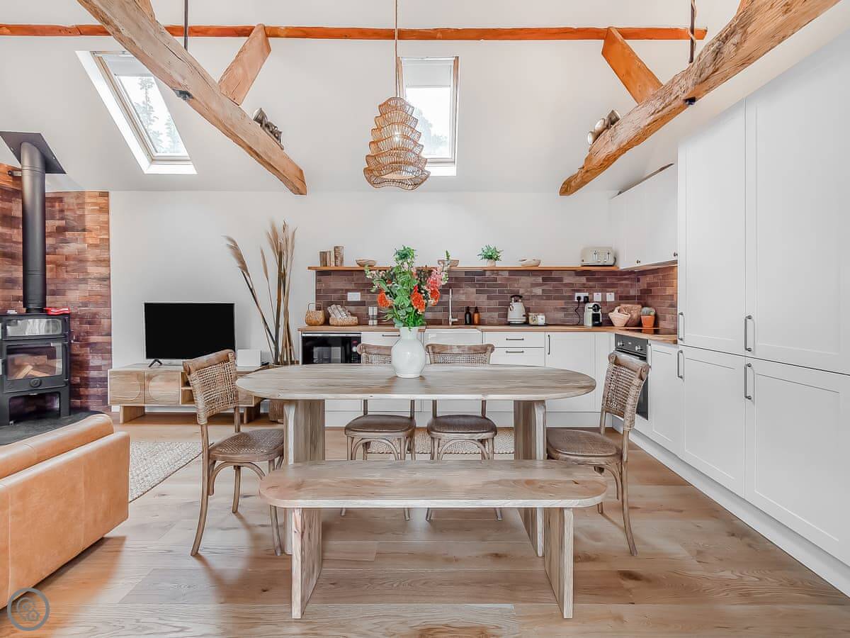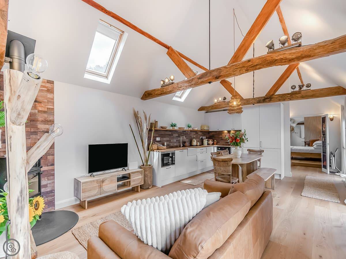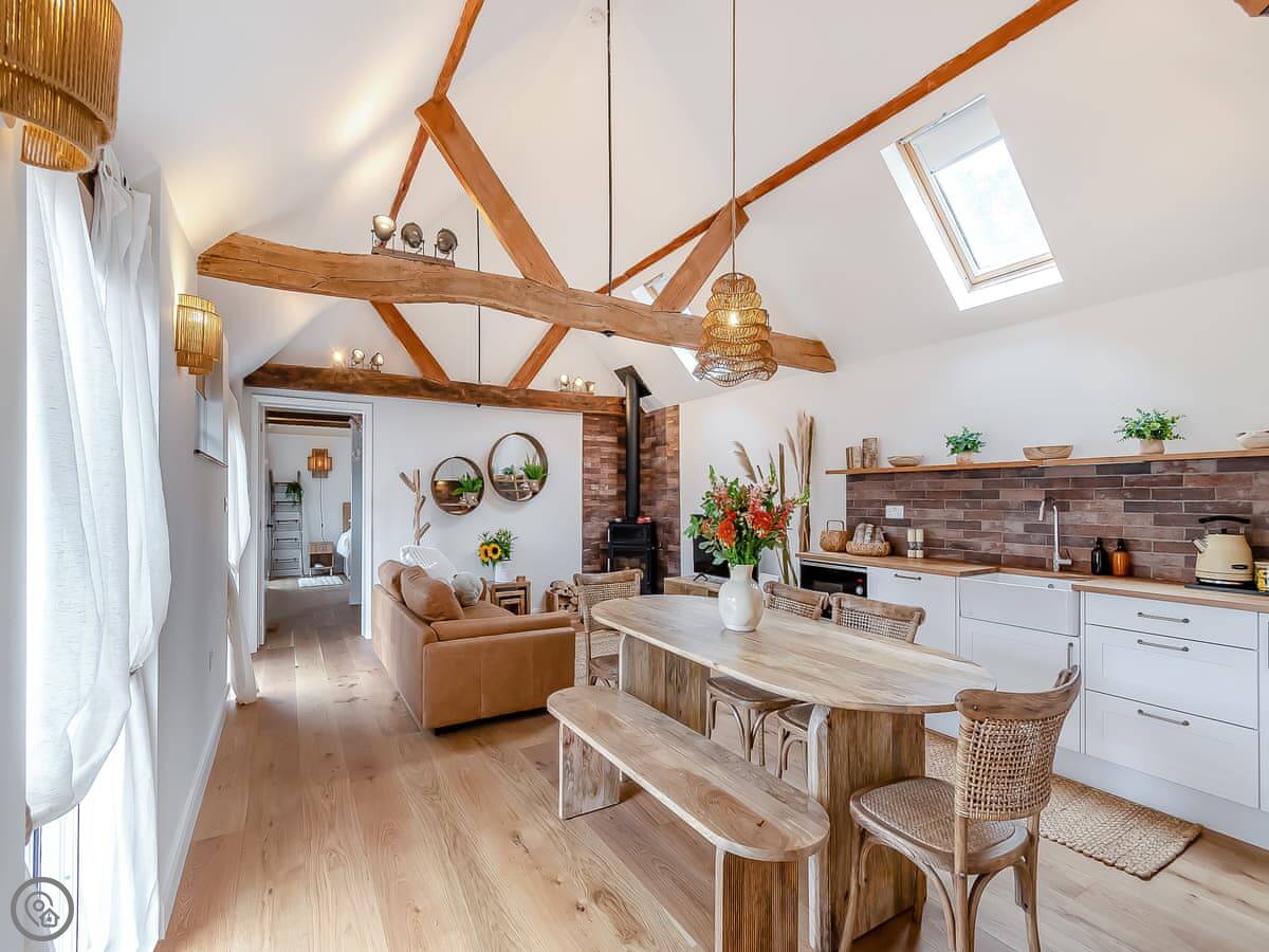The cottage is all on one floor, which is handy. There's underfloor heating and a wood burner. The garden is private and gets the sun in the afternoon. Parking for two cars on the drive.
