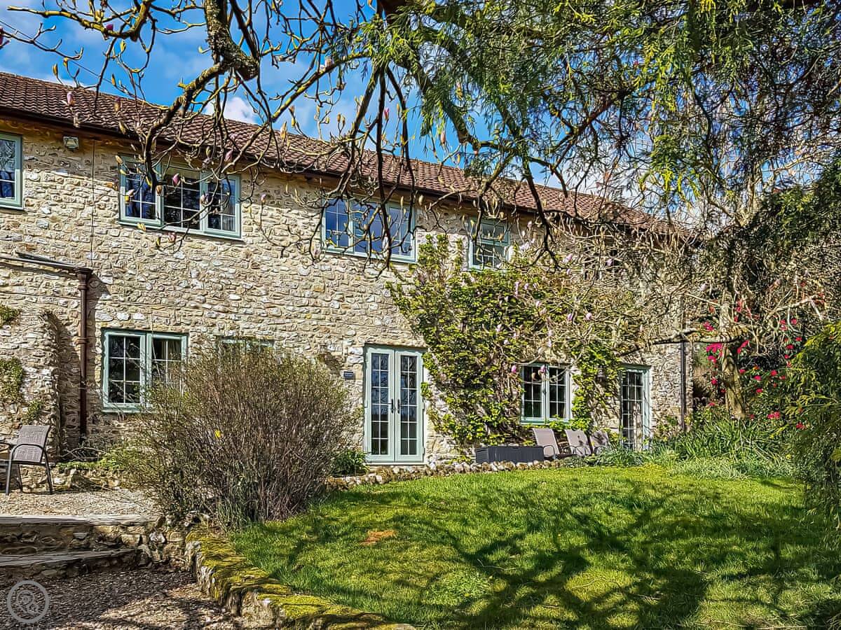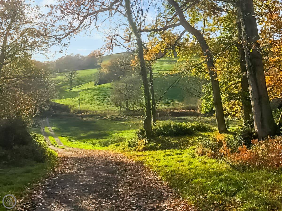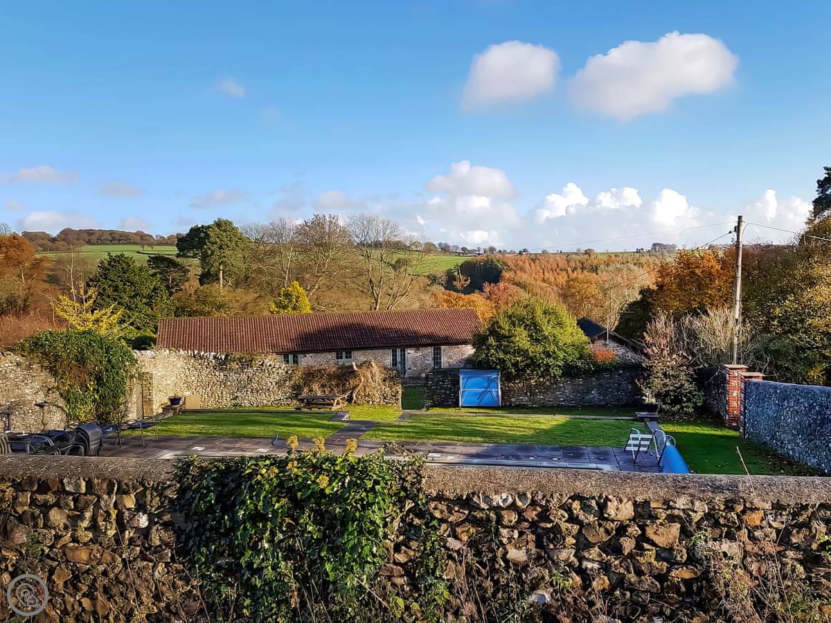 You get the whole eight acres to yourselves, to be honest. It's land from the old Furley Estate. There's a walled garden with an orangery you can use. There are ponds, fields, and a few benches dotted about. The views from the garden go on for miles.