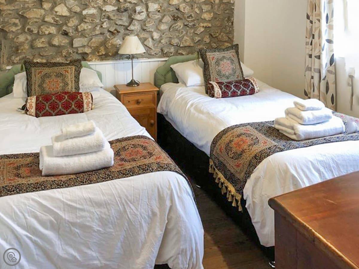 This is Brigand, in Furley near Axminster. It's a single-storey cottage, everything's on one level. Sleeps four, in two bedrooms. One's a king size bed, the other's a twin. There's one shower room.