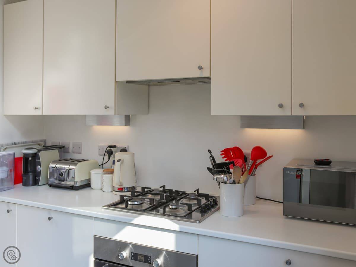 It sleeps four people. There are three bedrooms and one bathroom. It has a 4 Star rating. It's nice and modern inside. The layout is over three floors, so there are quite a few stairs. There are a couple of steps down from the living room to the kitchen as well. Just so you know.