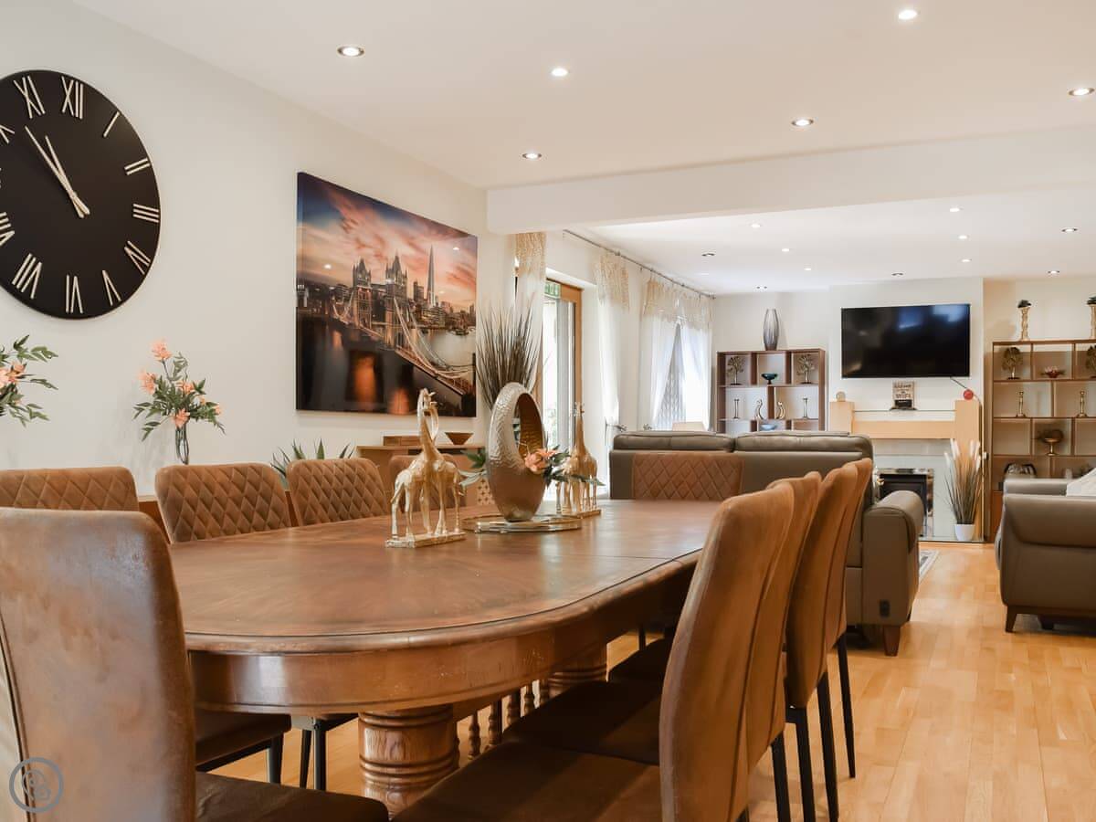 The kitchen is modern and has everything you'd need. The living area is open plan. There's a conservatory with some games and seating that leads out to the garden. The garden is fully enclosed, with a patio and some sunbeds.