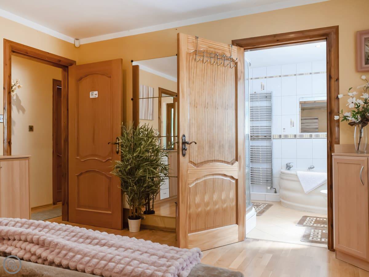 It's detached and inside a gated area, so it's private. The house is all on one level except for two bedrooms which are upstairs. The main bedroom is on the ground floor. It has a king size bed and an ensuite with a jacuzzi bath. Two other ground floor bedrooms have their own bathrooms too. There's a shower room upstairs for the two bedrooms there.