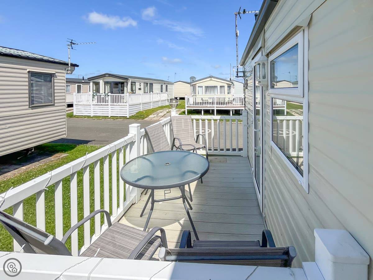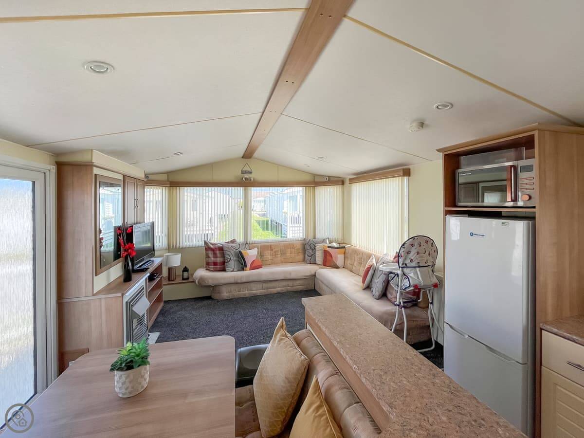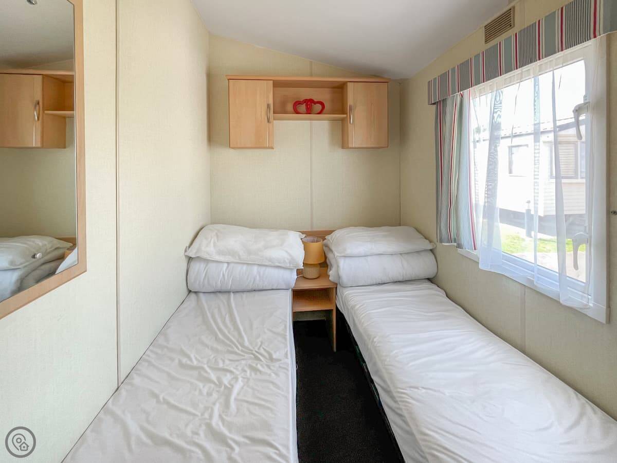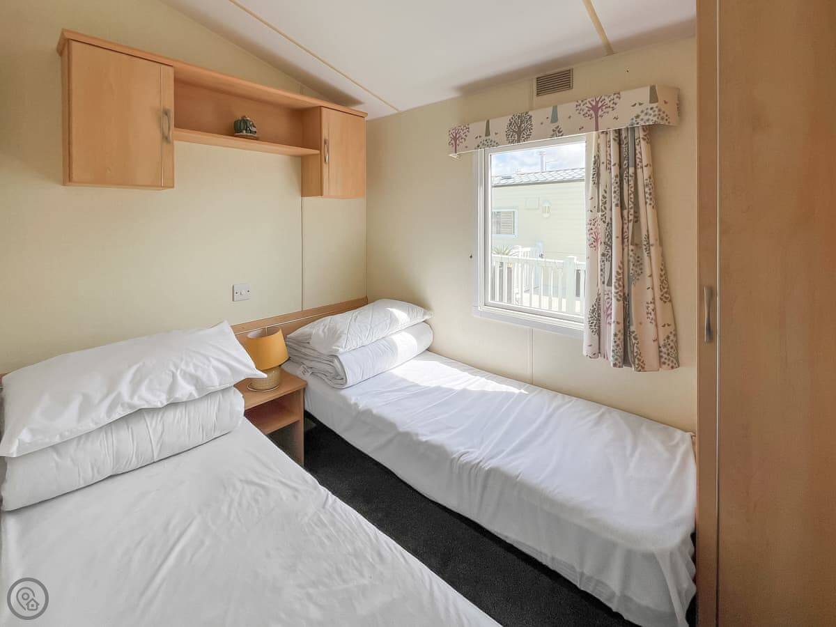 Cozee Stays is a holiday caravan on the Lyons Robin Hood park in Rhyl. It sleeps eight people. There are three bedrooms, a double and two twins. There's also a sofa bed in the living area if you need it. It's got one bathroom with a shower.