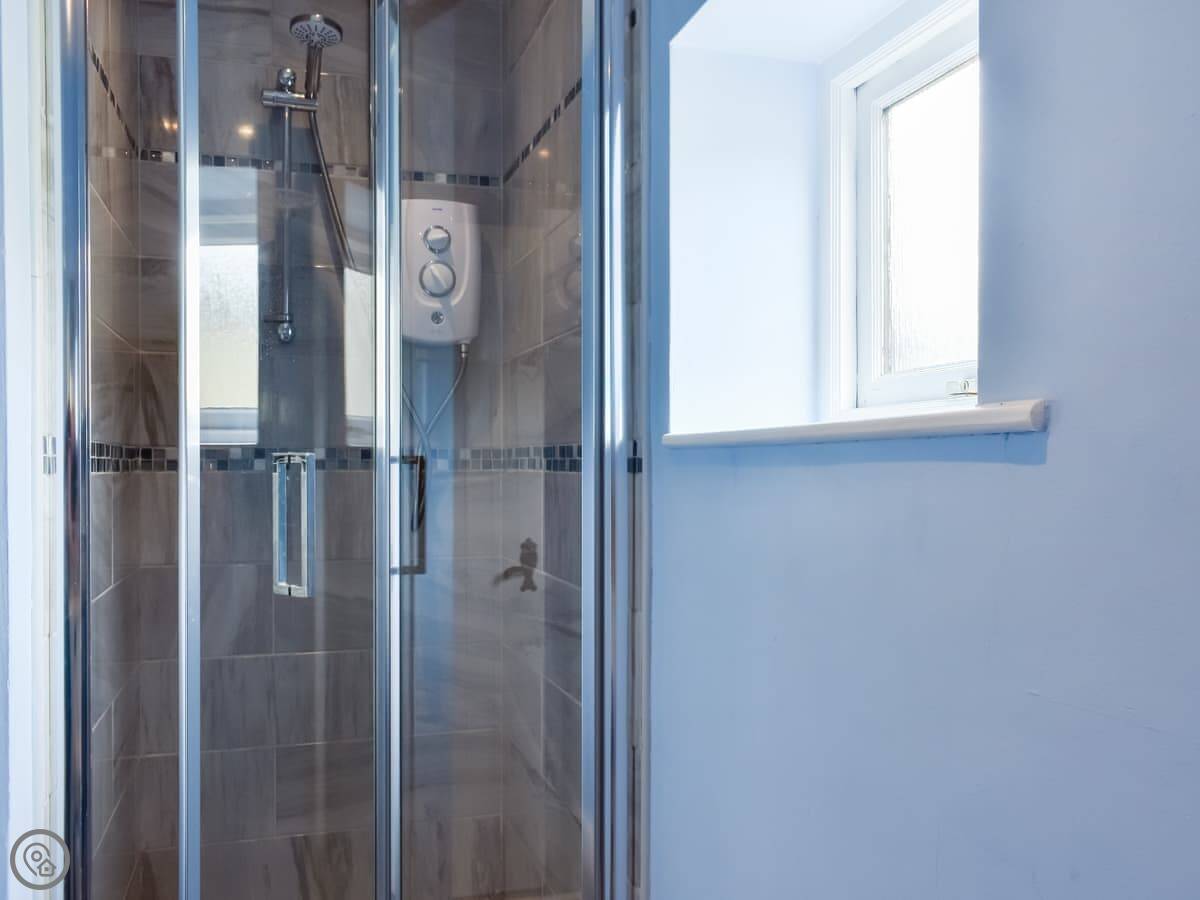 It sleeps three people. There's a double bedroom and a single bedroom, and one bathroom with a shower. It's got a 4 Star rating. Everything's on one level so it's pretty straightforward.