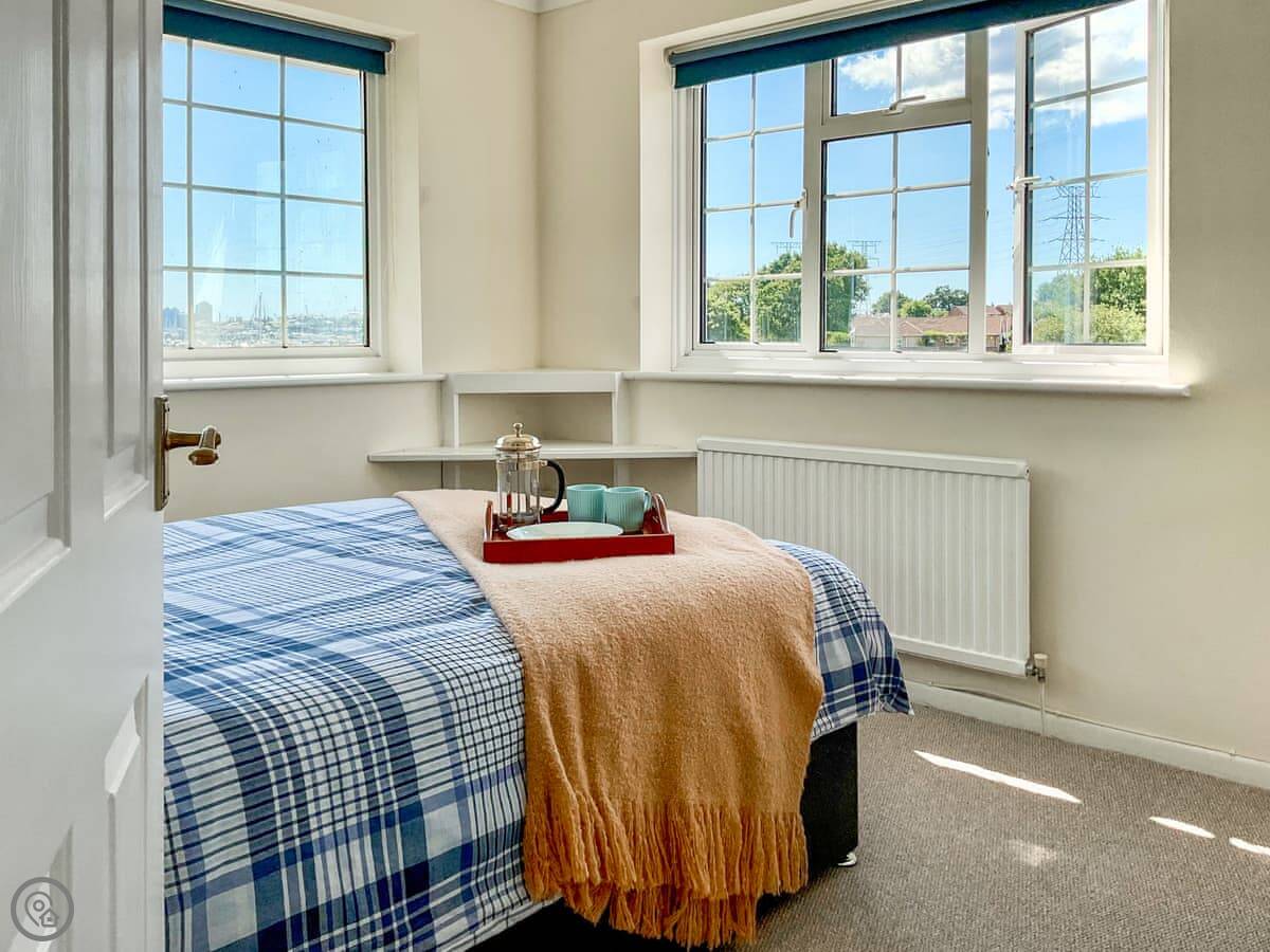 Harbourside is in Poole, overlooking Holes Bay. It's a modern house, sleeps eight. Four bedrooms, two bathrooms. It's got a 4 Star rating. The place is clean and comfortable, it's not old-fashioned.