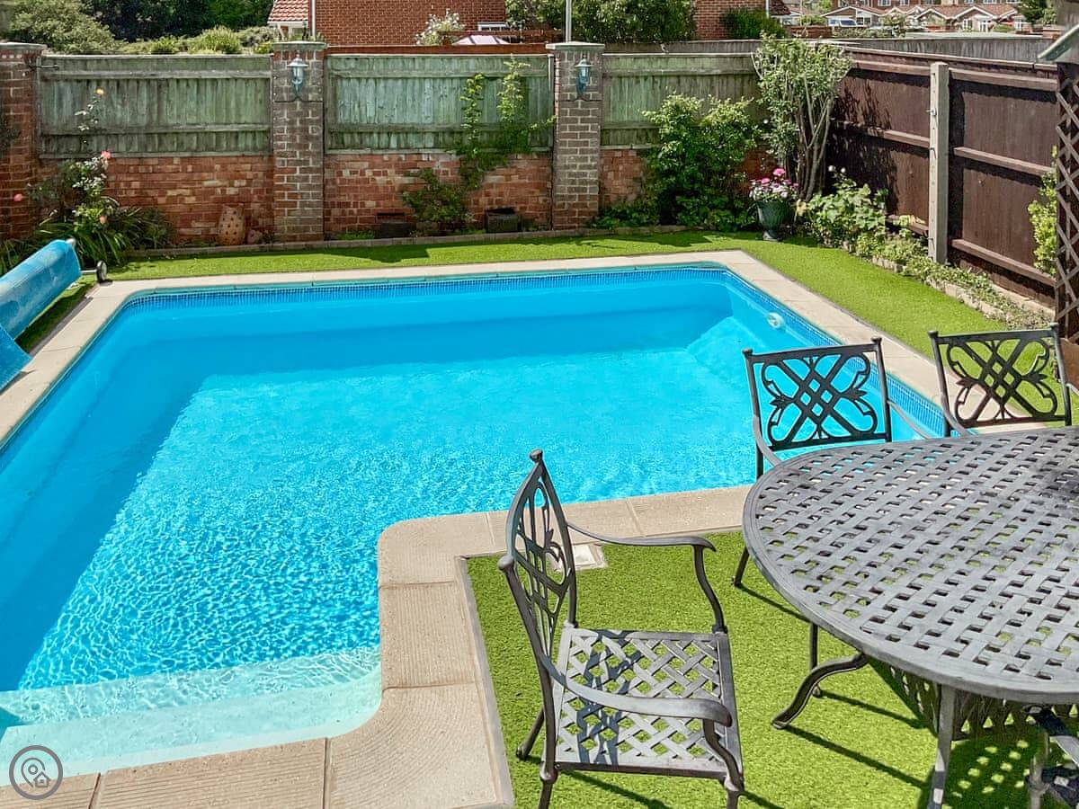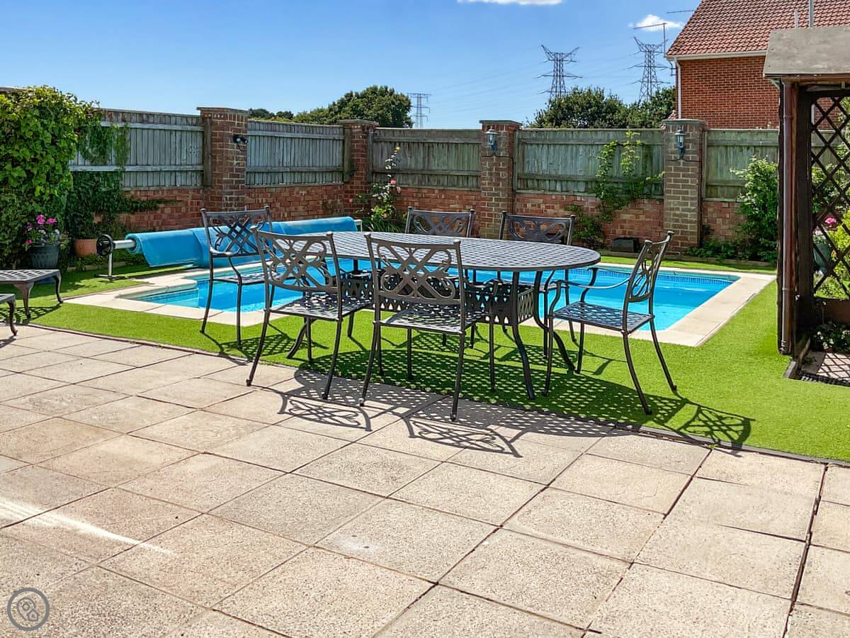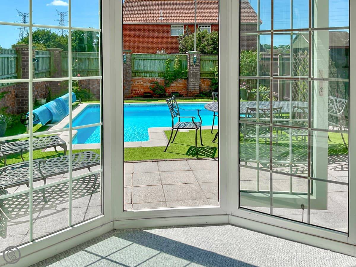 The main thing is the view. You look right out over the water. Sunsets are good from here. There's a decent-sized garden and a private swimming pool. It's fenced in.