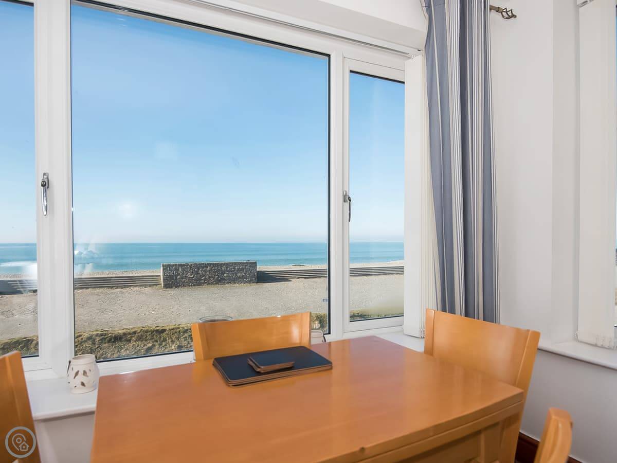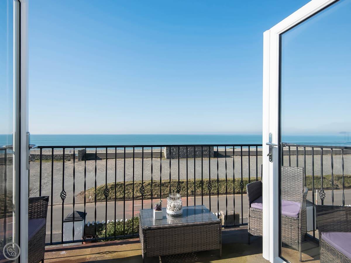 Waves is an apartment in Dinas Dinlle. It's on the first floor. You're right by the sea, basically. The main thing is the balcony. It looks straight out over the beach. You can hear the waves.