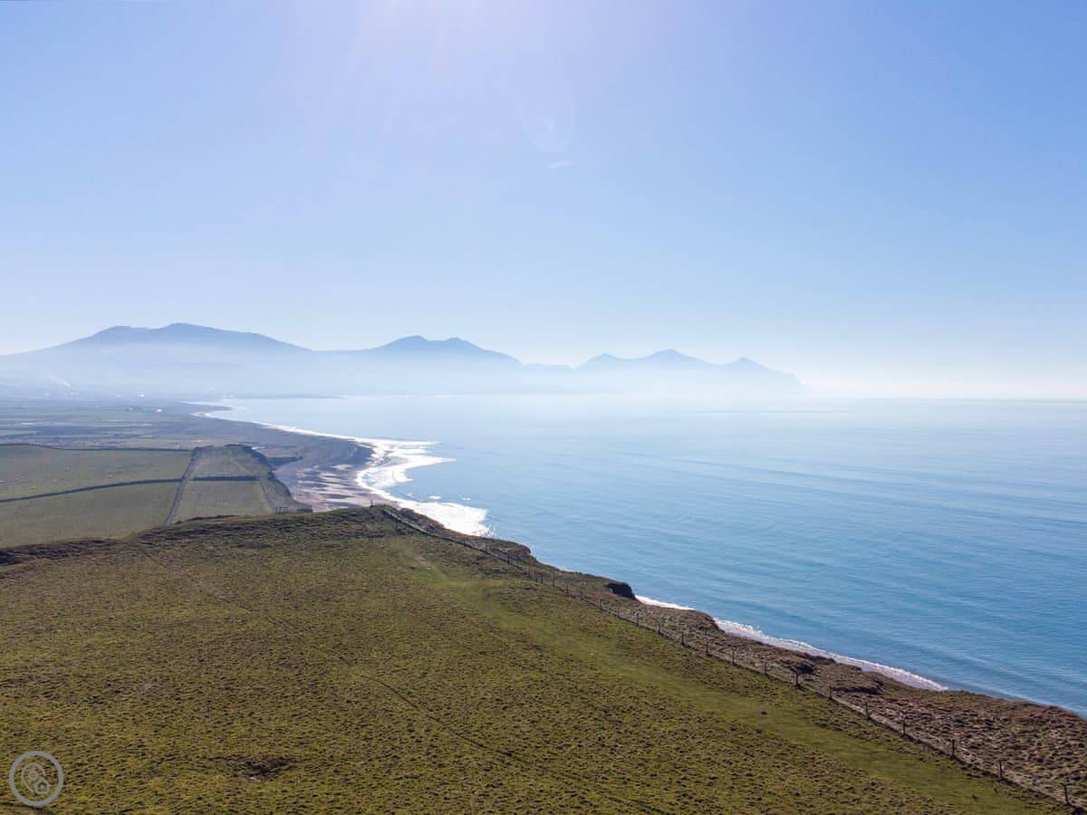 Dinas Dinlle has a big sandy beach. The Wales Coast Path goes right past. You can walk for miles.