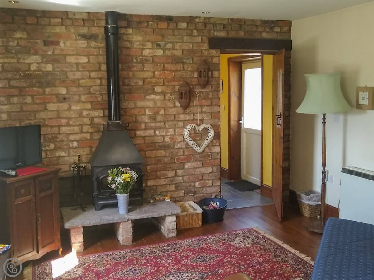 There's a wood burner for the colder months. It gets the place warm. The garden is enclosed, so it's safe for a dog. We take one pet.