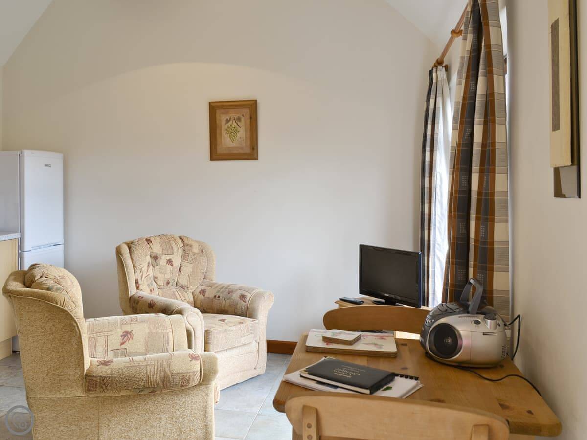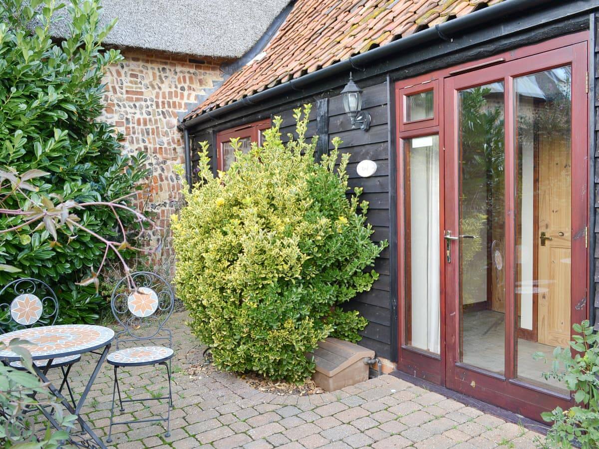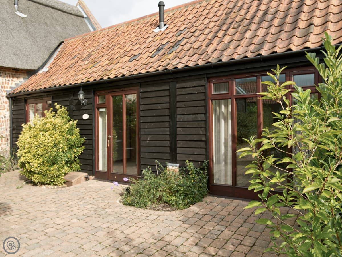 The barn is one of a small group set back from a country lane. Yours is the thatched one. You get your own patio area that looks out over fields.
