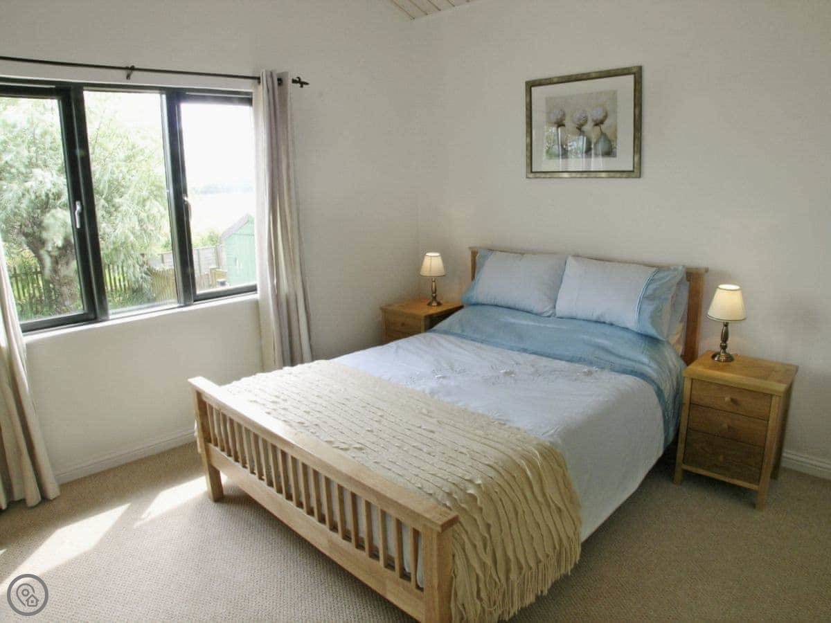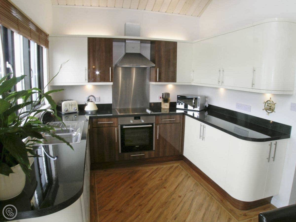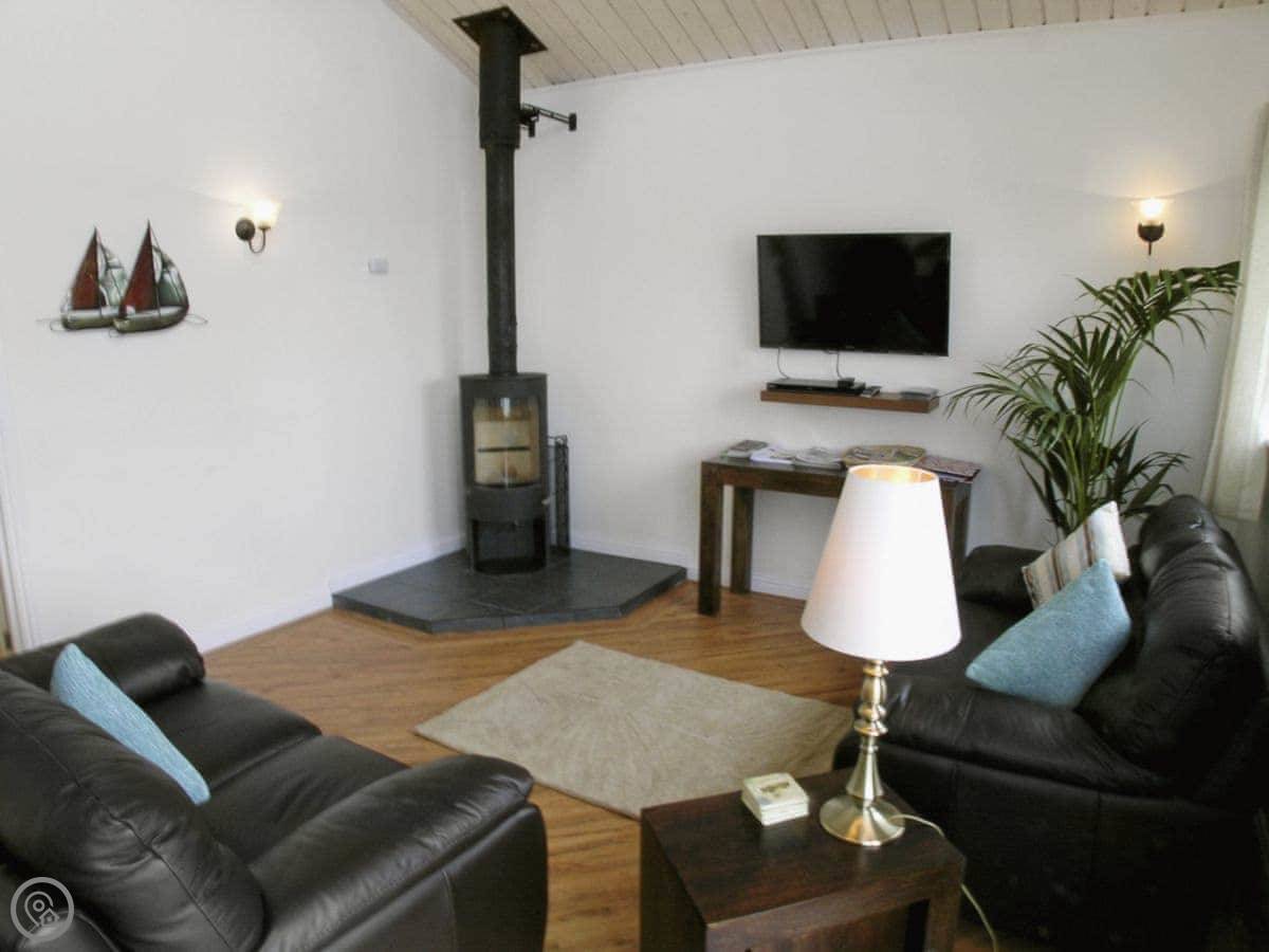 It sleeps four in two bedrooms, and they each have their own bathroom. It's got a 5 Star rating, so it's well-equipped and comfortable. There's underfloor heating and a wood burner.
