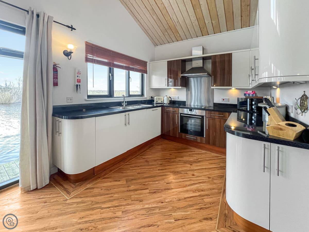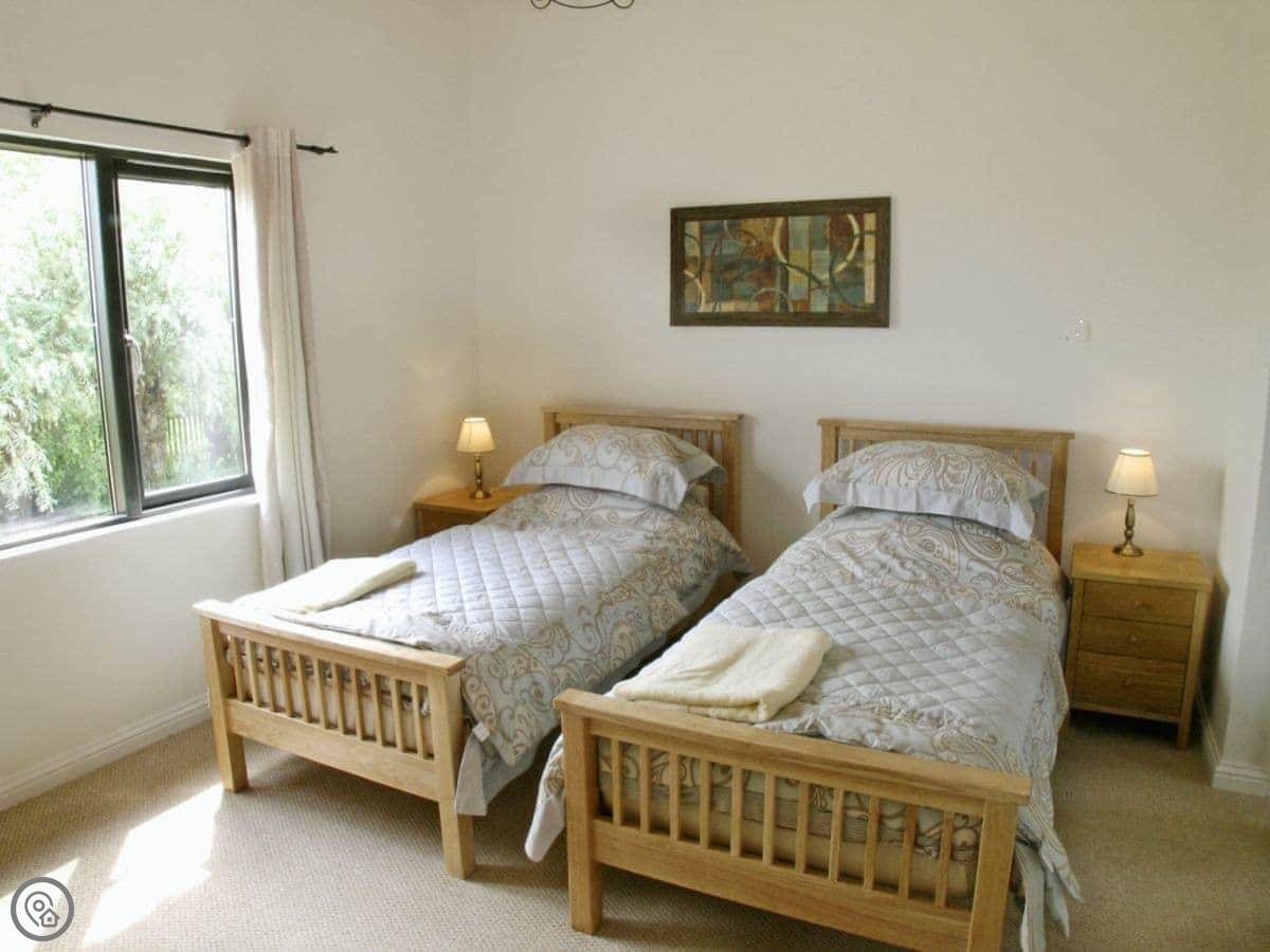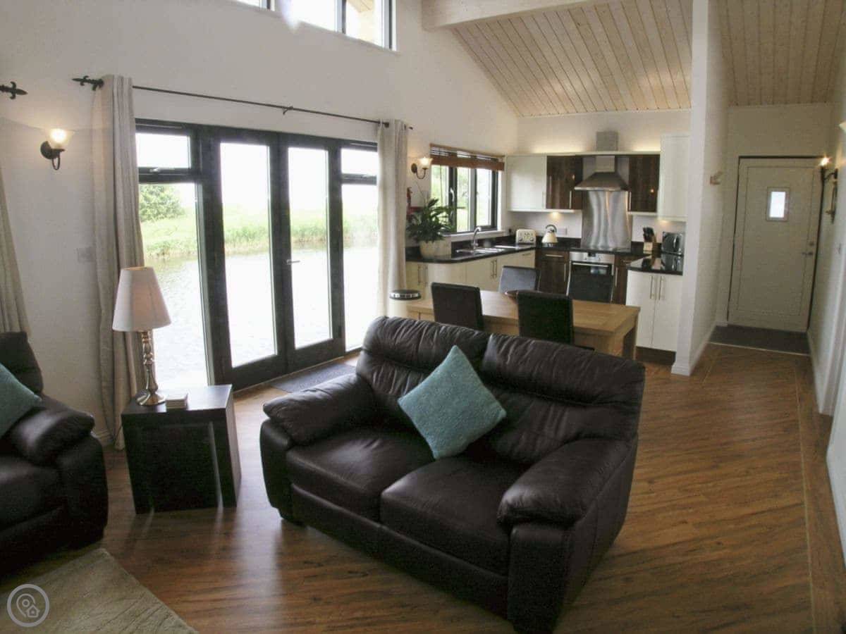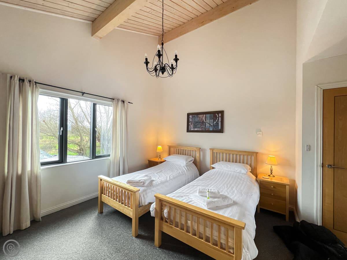 It sleeps four in two bedrooms, and they each have their own bathroom. It's got a 5 Star rating, so it's well-equipped and comfortable. There's underfloor heating and a wood burner.