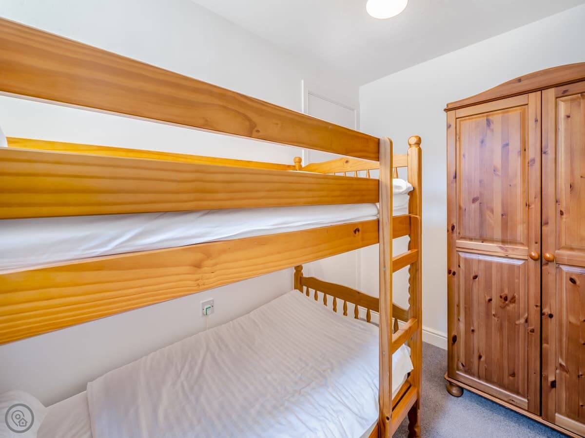 It’s a practical place. Sleeps four in two bedrooms, one bathroom. The bedrooms have pine furniture. It has a 3 Star rating, so it's comfortable and clean without being fancy. It's on the ground floor, which is handy.
