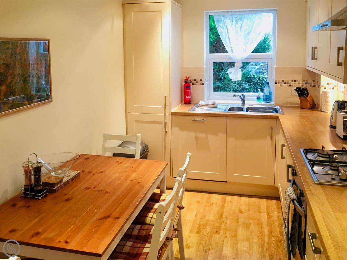 It's a ground floor flat that sleeps four. Two bedrooms, two bathrooms. One bedroom is en-suite, which is handy. It's got a 4 Star rating, so it's well-equipped and comfortable.